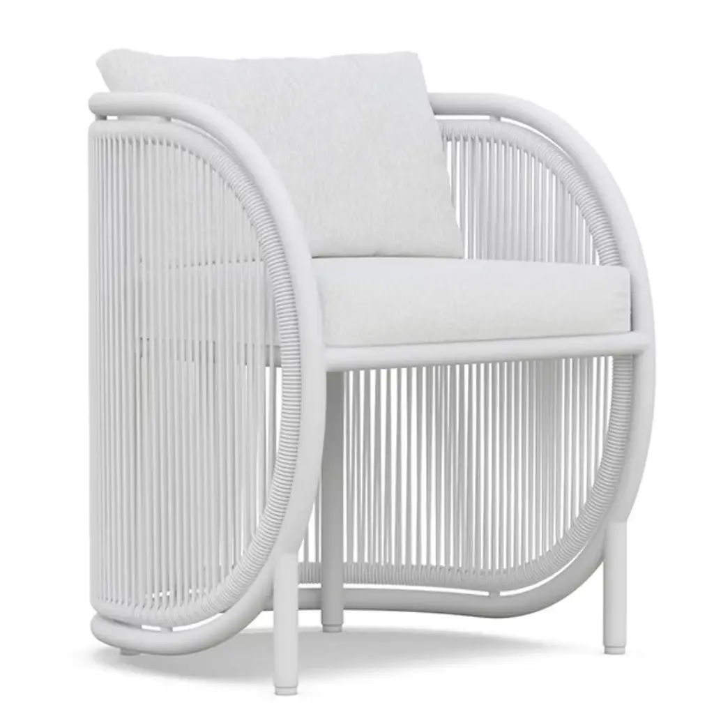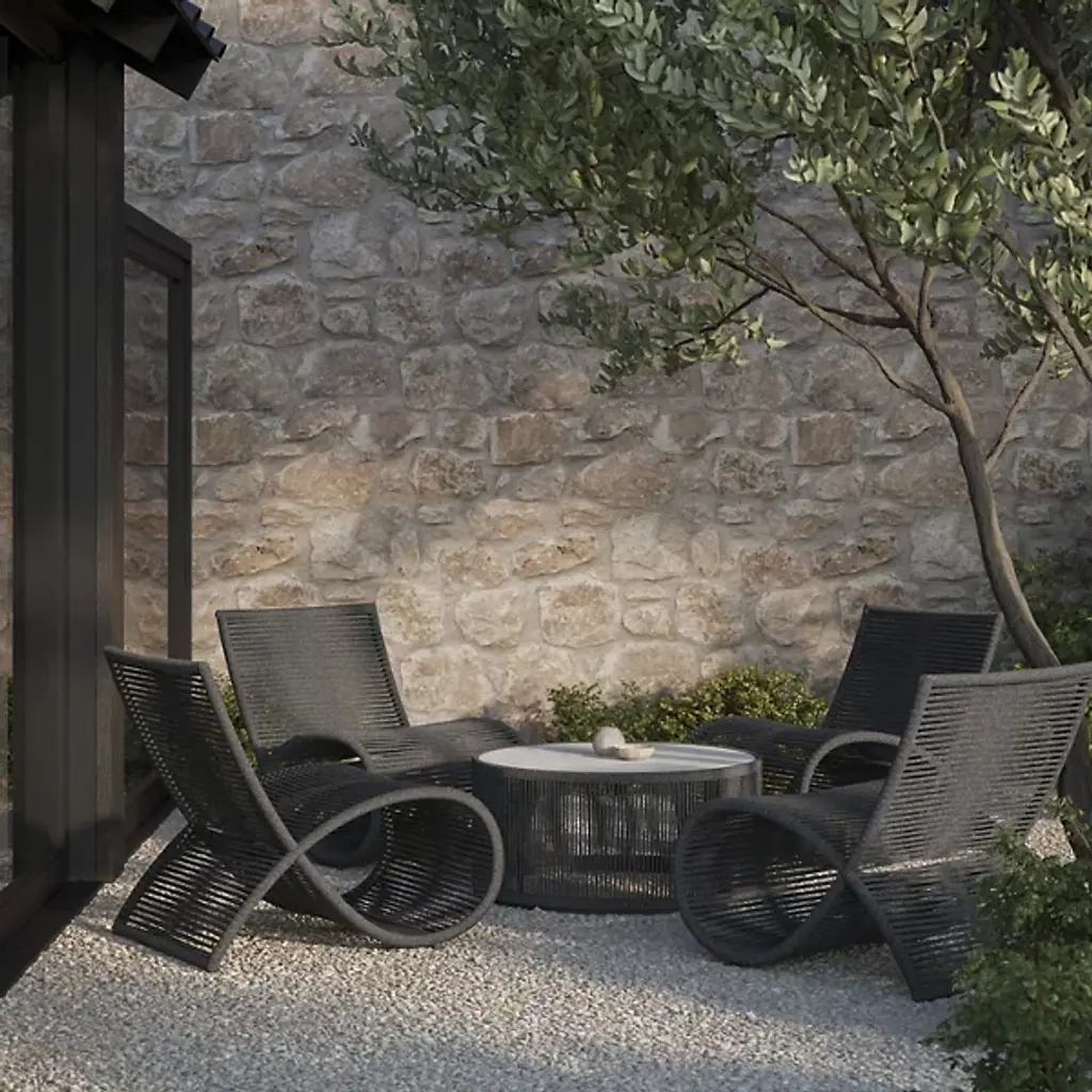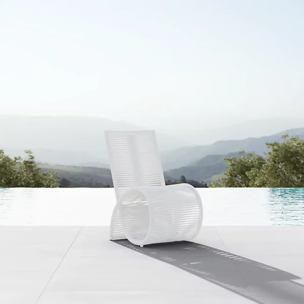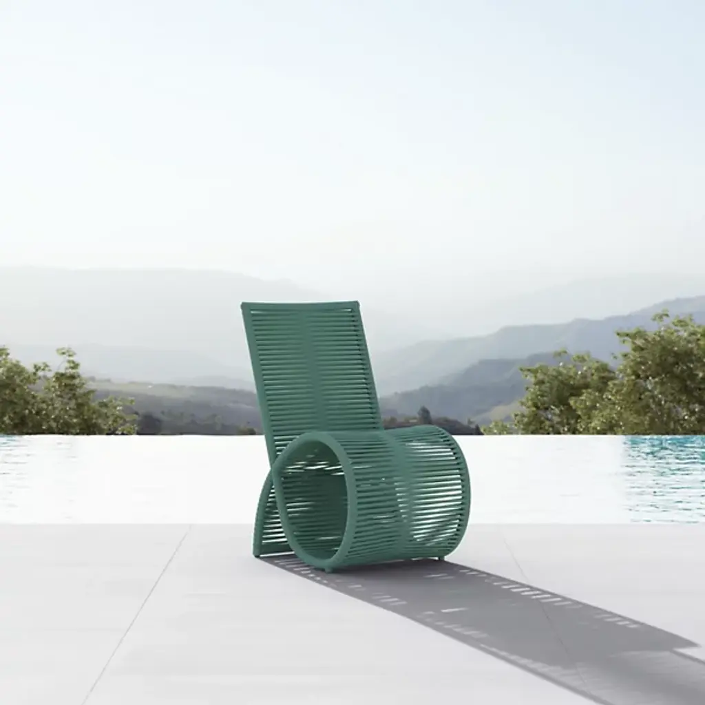 The Wave Outdoor Dining Chair, Set of 2 from Azzurro Living elevates the act of dining into an encounter with sculptural artistry. Its body-conscious curves flow in one unbroken gesture, where tightly woven textelene rope creates a linear texture against the chair's undulating aluminum frame. The design captures the essence of natural wave motion through calculated proportions and rhythmic material application, creating fluid geometry that adds kinetic energy to outdoor dining arrangements.