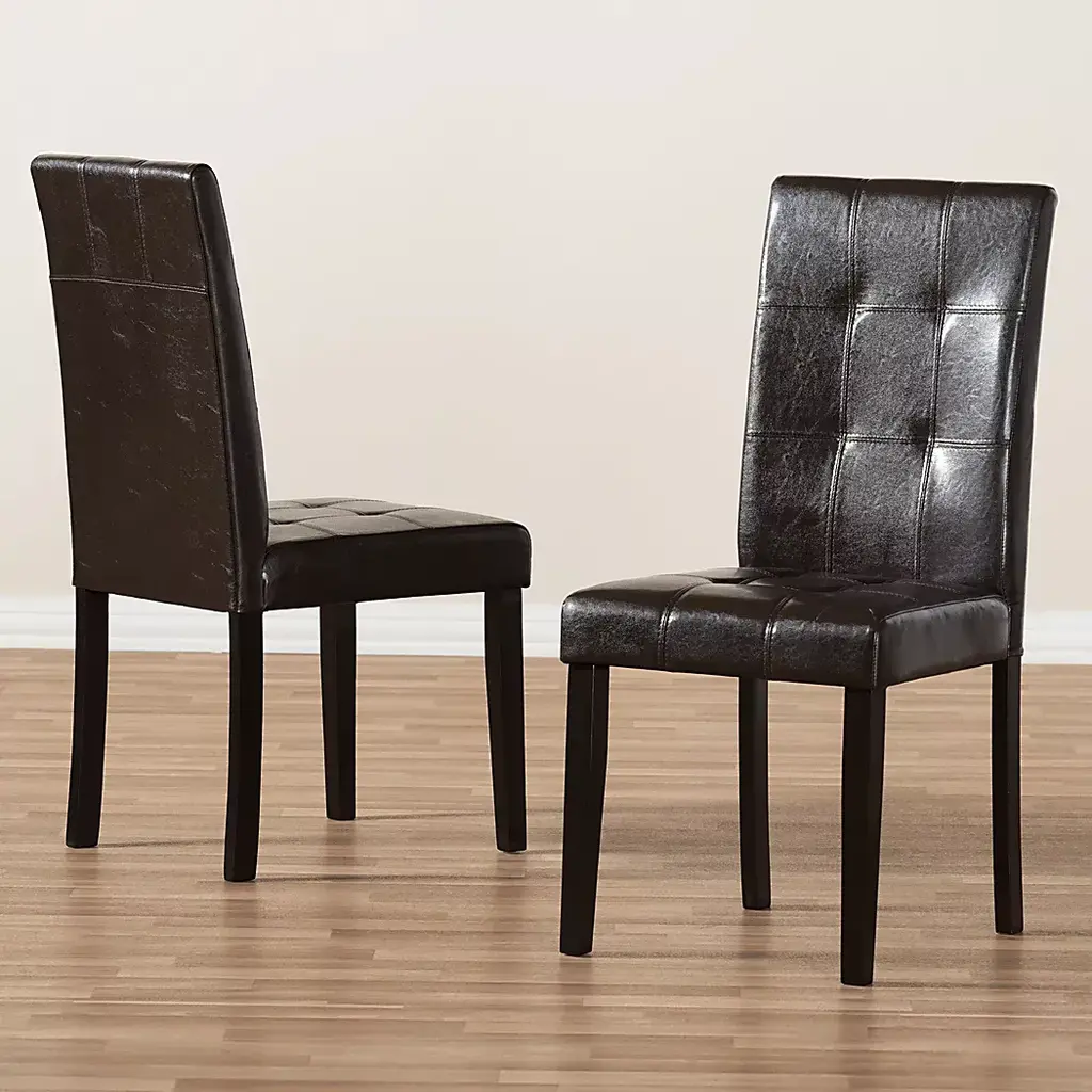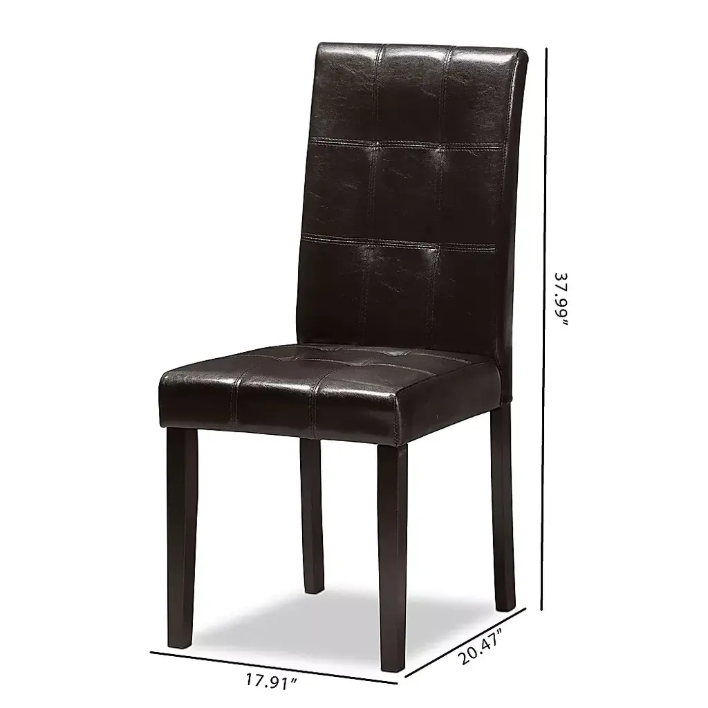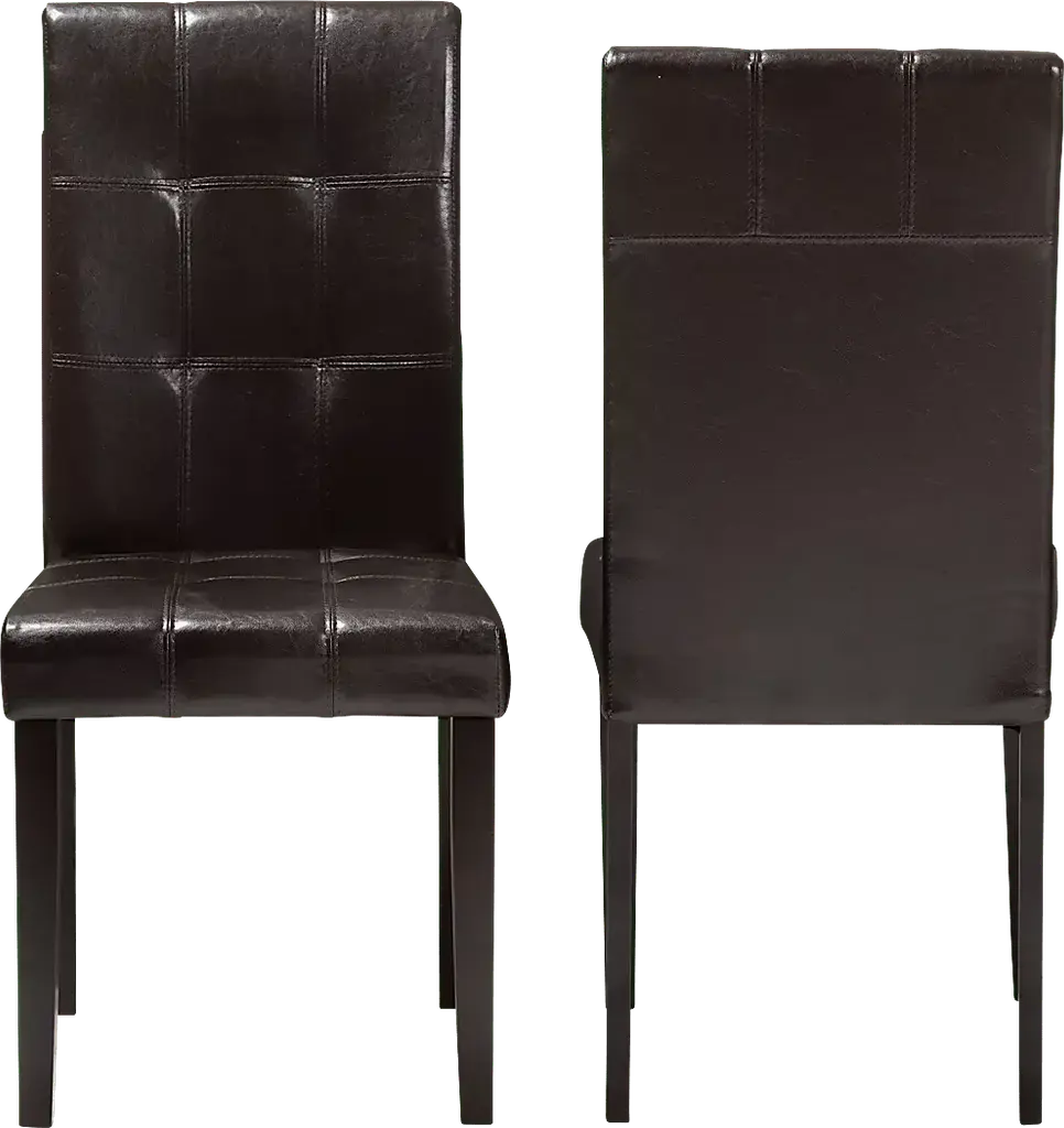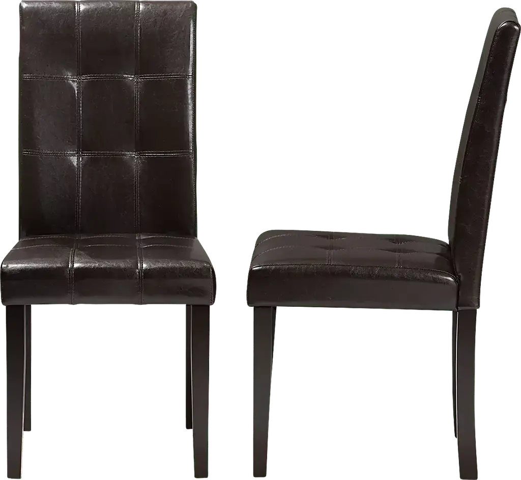 Extend effortless style into your dining space with the Webrewsa dark brown dining chair, set of 2. Constructed of sturdy and robust rubberwood for lasting support, the dining chair seat is upholstered in dark brown faux leather for easy maintenance and everyday use. Featuring a high back with tufted detailing, the Webrewsa is foam-filled for added support and comfort. Customer assembly is required.