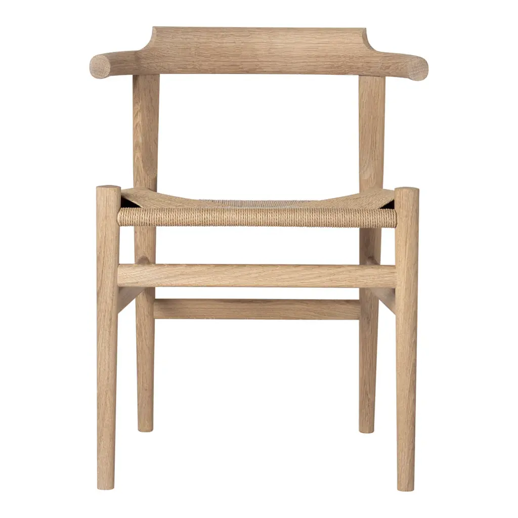Originally this chair was designed by Hans J. Wegner for the DSB (Danish Rail) ferries, however DSB ended up choosing another of Wegner's chairs, PP 208. Subsequently he continued working on the design, and in 1987 PP Møbler started the actual production of the PP68 Chair. With The PP68 Chair, Wegner created comfortable dining chairs suitable for long, cosy evenings around the dining table. As opposed to many of Wegner's more elaborate models, the short armrests have been designed enabling them to, partially, fit under the table, and it can also hang from the table top to make cleaning easier. Each solid wood tenon joint has been tested to withstand one ton of pulling strength. NOTE: This item is made to order by some of the world's best furniture craftsmen using materials that are required to meet PP Mobler's exacting specifications. As such, lead times can vary and are subject to change.