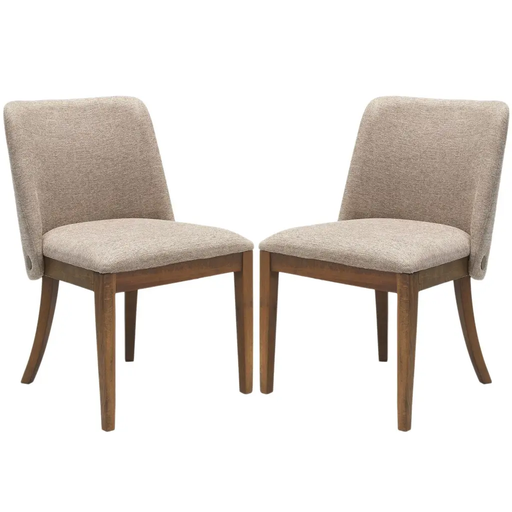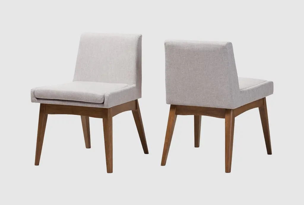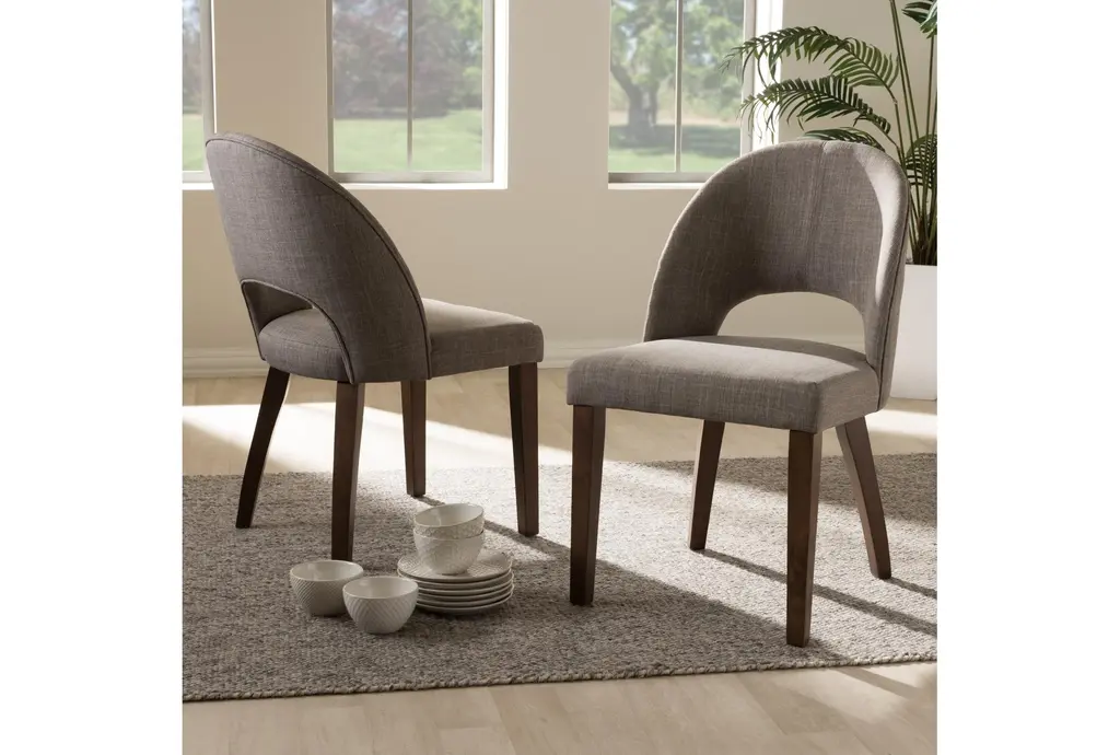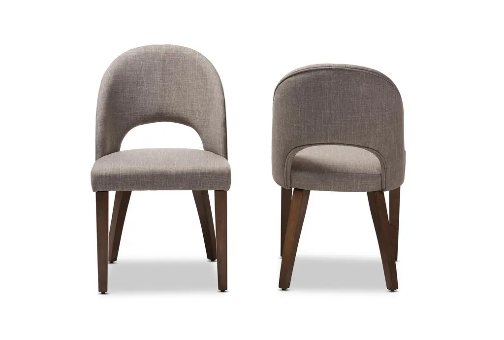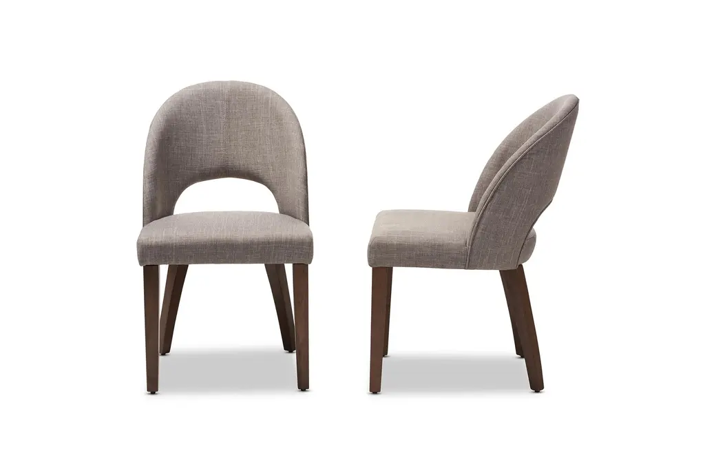 West Light Grey Fabric Upholstered + Walnut Wood Dining Chair Set Of 2