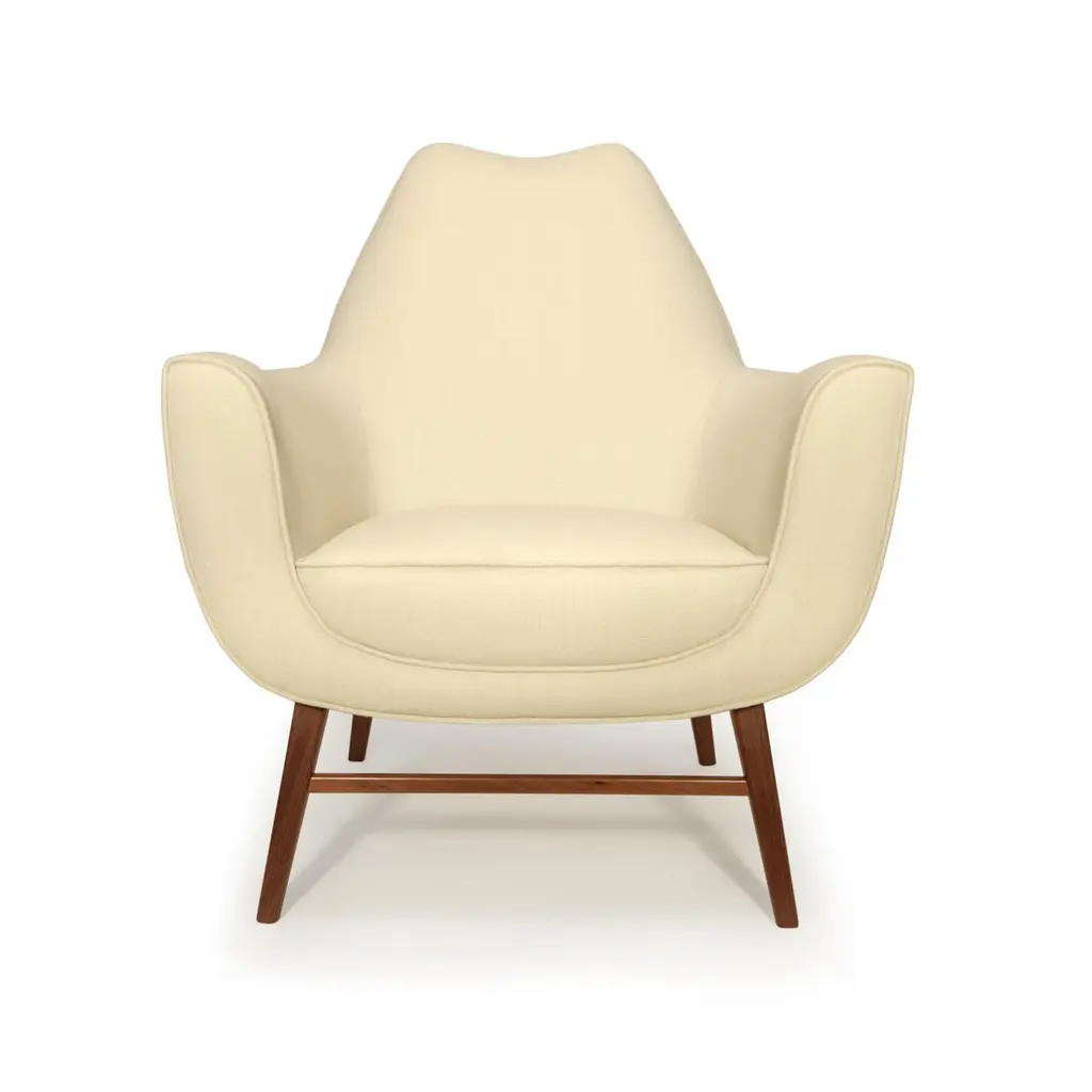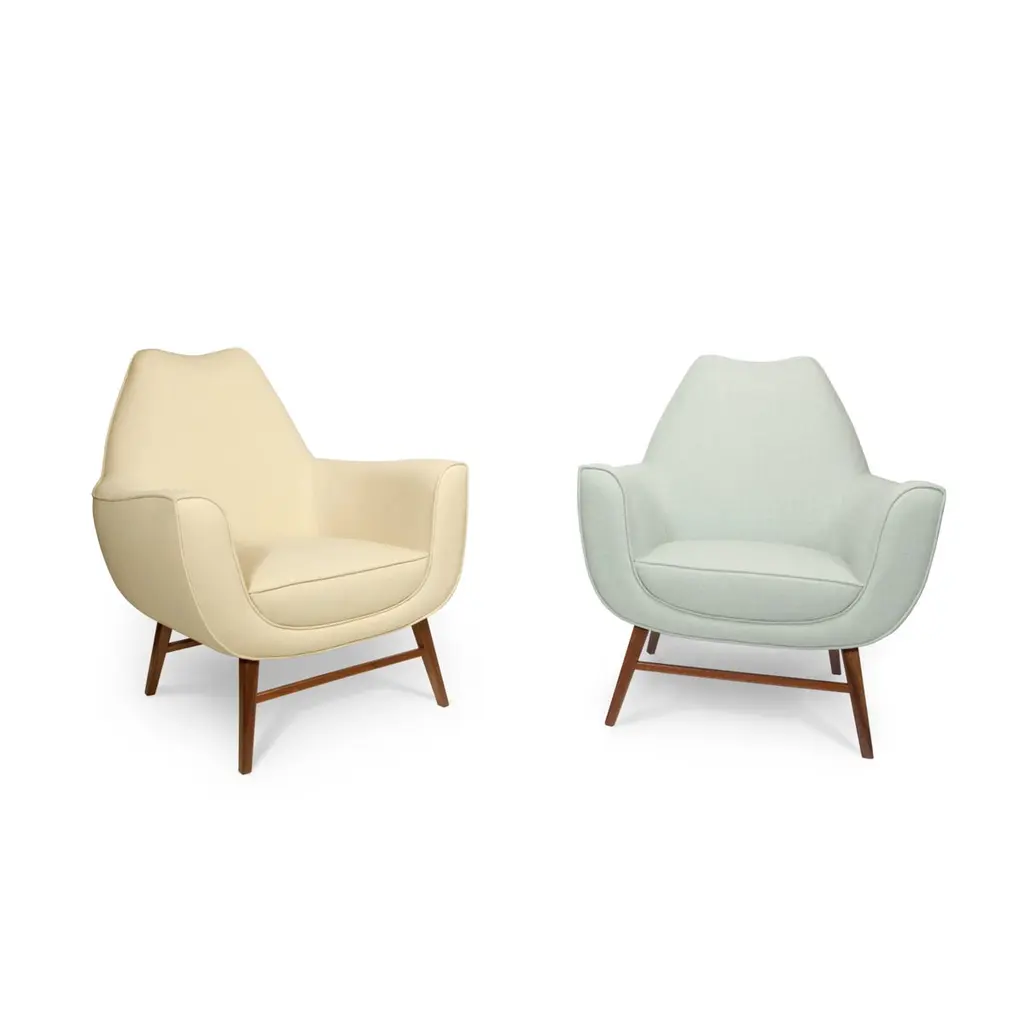 Western is a captivating armchair that recreates the image of an old cowboy hat standing in a saddle rack.The top of the armchair performs the concave hat with rounded tabs and the band around it turns into a comfortable cushion. The base in walnut approaches the structure and color of the saddle rack.Having a modernist inspiration at a fist sight, the Western armchair is a piece that stands out in the upholstery design by bringing history into the projects of the most adventurous interior designers.Product detailsUpholstery: the price shown refers to the piece without any fabric (the client must provide it). If you're looking for the price of the piece with the fabric shown on the image, please search the product name without the "COM".Legs: structure in walnut finished in half gloss varnish.COM: 4.5m 176.96 in. (Standard width 140cm 55 in.)Product optionsUpholstery: Client's Own Material.Legs: other veneers, natural, aged or degrade gold/silver/copper leaf or any Ral Classic color finished in matt, half gloss or high gloss varnish.Weight 20Kg 44.1 lbsMade to order. Custom sizes and other finishes are available under request. Designed by Joana Santos Barbosa for InsidherLand, 2015. Handmade in Portugal.