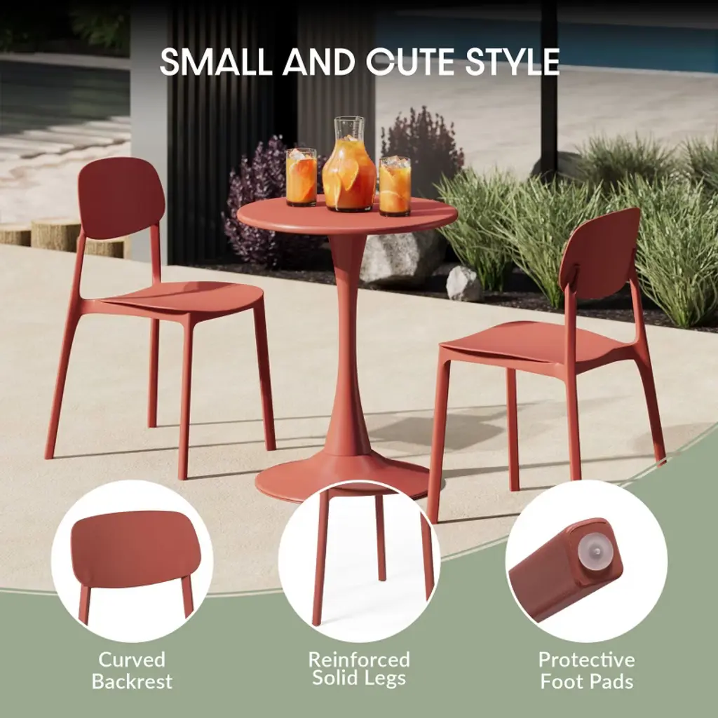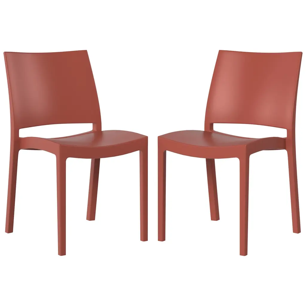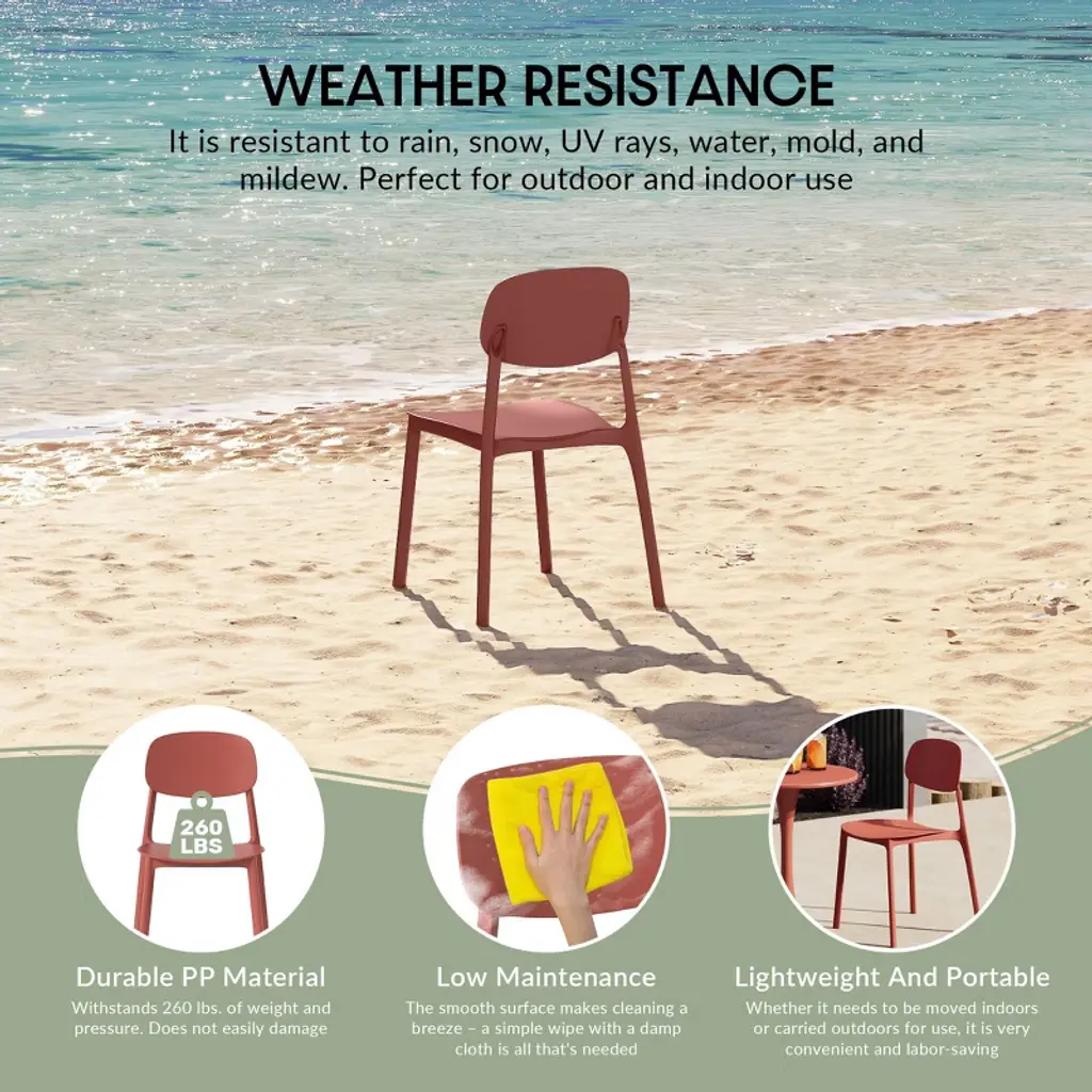 Gather with friends or family for a quick brunch on your balcony with our outdoor stackable resin dining chairs. Crafted from durable, all-weather PP resin, prepared to withstand the elements while retaining their vibrant color year-round thanks to their UV-resistant properties. Lightweight and simple to move, they are perfect for creating a flexible dining area on even the smallest balconies or patios. Designed with comfort in mind, featuring a open backrest to keep you cool on warm summer evenings. And when not in use, they stack neatly for easy storage.While we strive to accurately represent product colors, please be aware that actual colors may vary slightly due to individual screen settings and lighting conditions. FeaturesConstructed with Durable Polypropylene (PP) Material and Designed for Sturdiness and StabilityAll-Weather Resistant Material Made to Last the Harsh OutdoorsUV-Resistant to Maintain its Vibrant Color Year-RoundCurved Backrest for Upper Body Support and Comfort and Splayed Legs for Better Stability and DurabilityModern, Open Backrest for Enhanced Airflow and Cooling ComfortNo Assembly Required, Simply Unpack and Enjoy. Stackable for Easy StorageProtective Rubber Foot Pads Help Protect Your Floor From Damage, Increase Stability, and Improve Floor ContactDetails:Product Type: Patio Dining ChairsWhat's Included: (2) Dining ChairDining ChairDimensions: 18.5" W x 20.25" D x 32" HWeight: 8.3 lbs.Seat Width: 16.25"Seat Depth: 16"Seat Height: 17.75"Weight Capacity: 260 lbs.