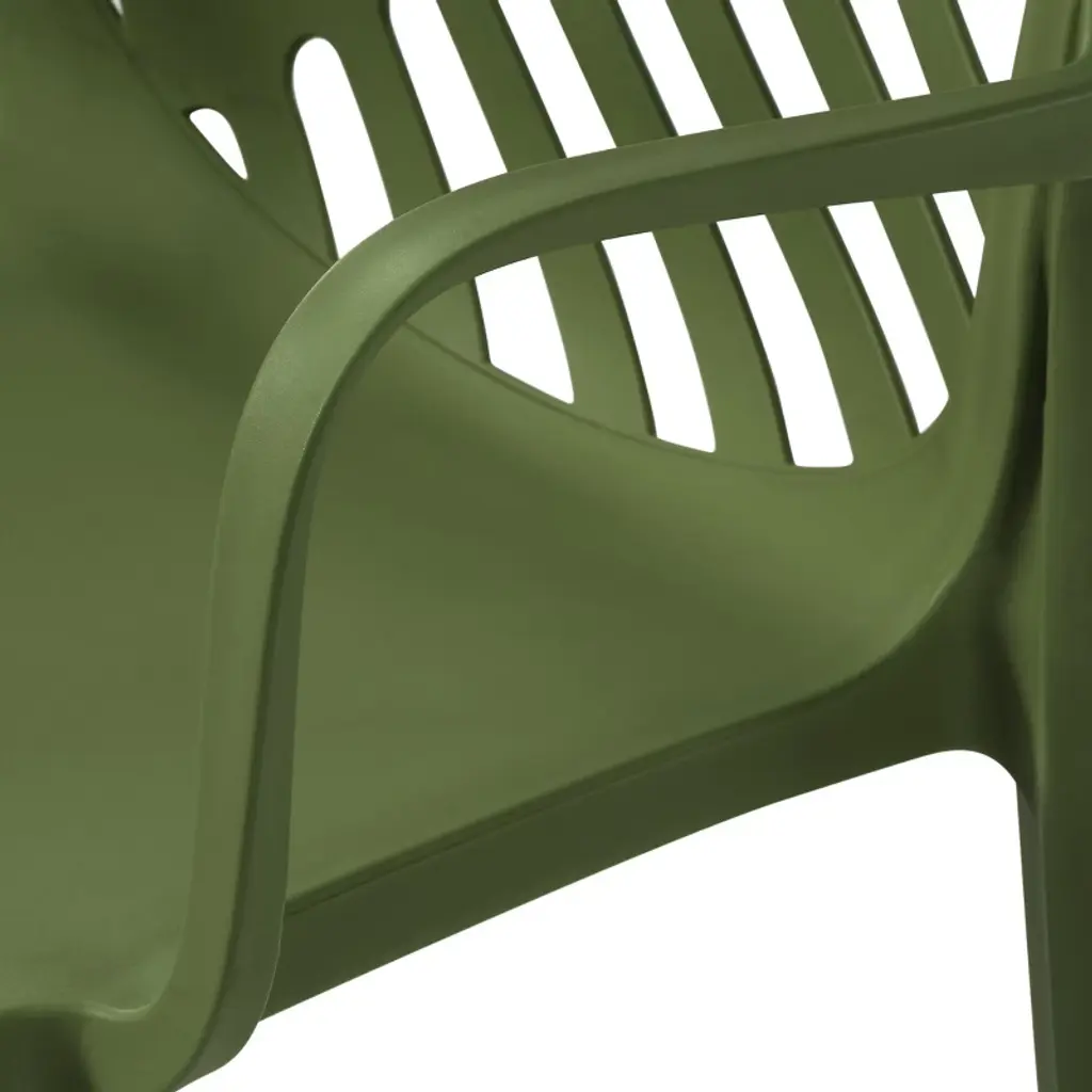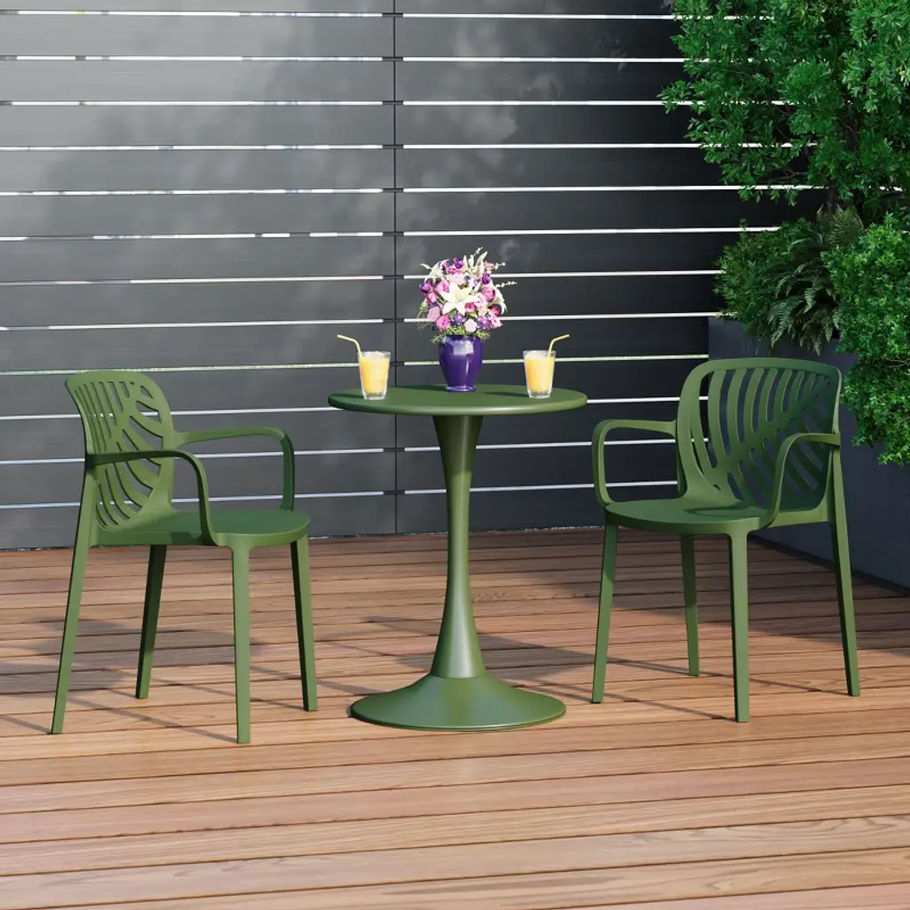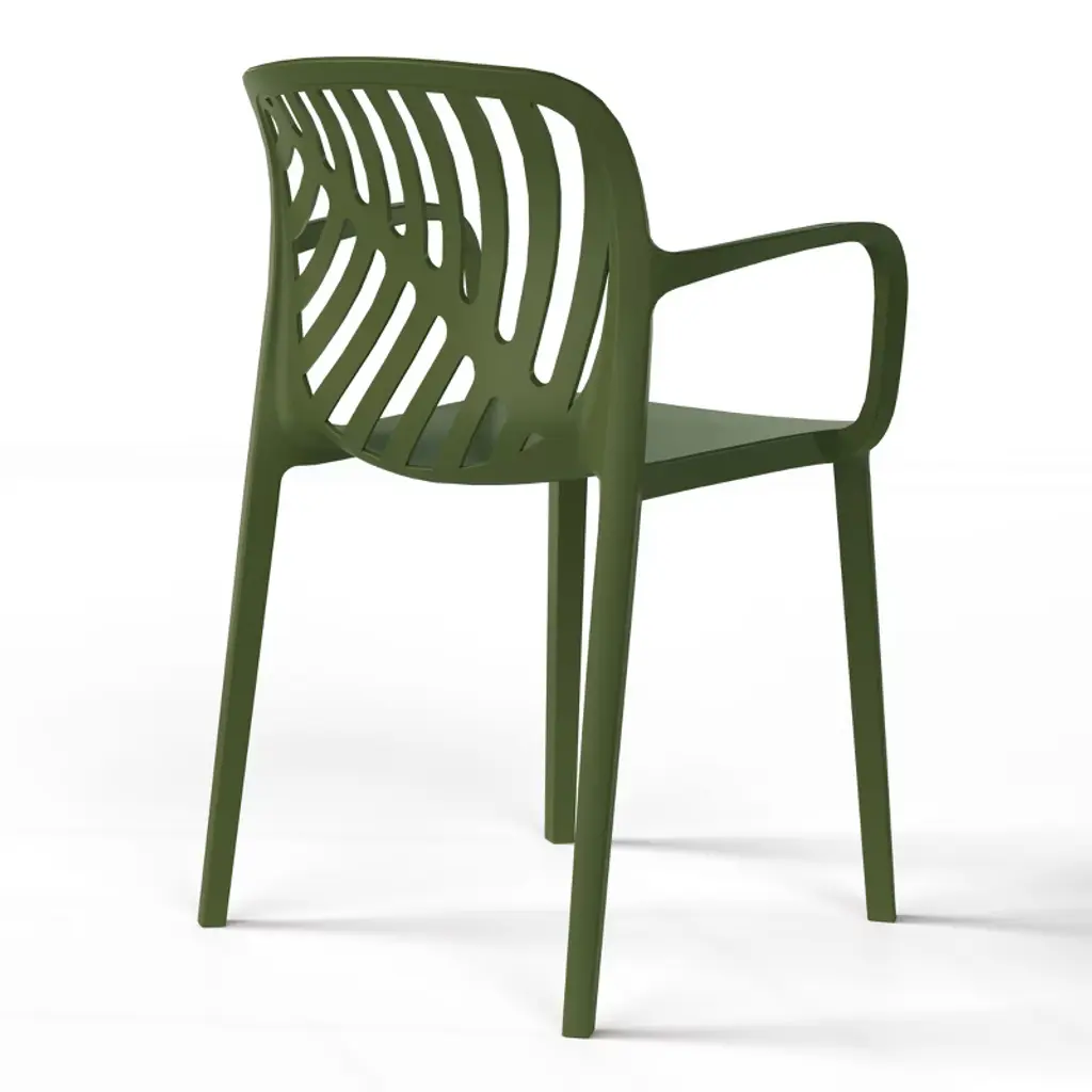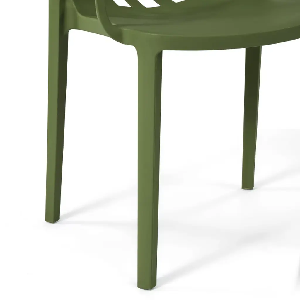 Gather with friends or family for a quick brunch on your balcony with our outdoor stackable resin dining arm chairs. Crafted from durable, all-weather PP resin, prepared to withstand the elements while retaining their vibrant color year-round thanks to their UV and fade-resistant properties. Lightweight and simple to move, they are perfect for creating a flexible dining area on even the smallest balconies or patios. Designed with comfort in mind, featuring smooth armrest and a ventilated backrest to keep you cool on warm summer evenings. And when not in use, they stack neatly for easy storage.While we strive to accurately represent product colors, please be aware that actual colors may vary slightly due to individual screen settings and lighting conditions. FeaturesConstructed with Durable Polypropylene (PP) Material and Designed for Sturdiness and StabilityAll-Weather Resistant Material Made to Last the Harsh OutdoorsUV and Fade Resistant to Maintain its Vibrant Color Year-RoundCurved Backrest for Upper Body Support and Comfort with Rounded and Smooth ArmrestModern, Ventilated Backrest for Enhanced Airflow and Cooling Comfort with Charming Palm Leaf DesignNo Assembly Required, Simply Unpack and Enjoy. Stackable for Easy StorageProtective Rubber Foot Pads Help Protect Your Floor From Damage, Increase Stability, and Improve Floor ContactDetails:Product Type: Patio Dining ChairsWhat's Included: (2) Dining ChairDining ChairDimensions: 21.5" W x 21" D x 31.25" HWeight: 9.5 lbs.Seat Width: 16.25"Seat Depth: 17.25"Seat Height: 17.75"Weight Capacity: 260 lbs.