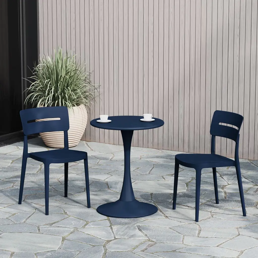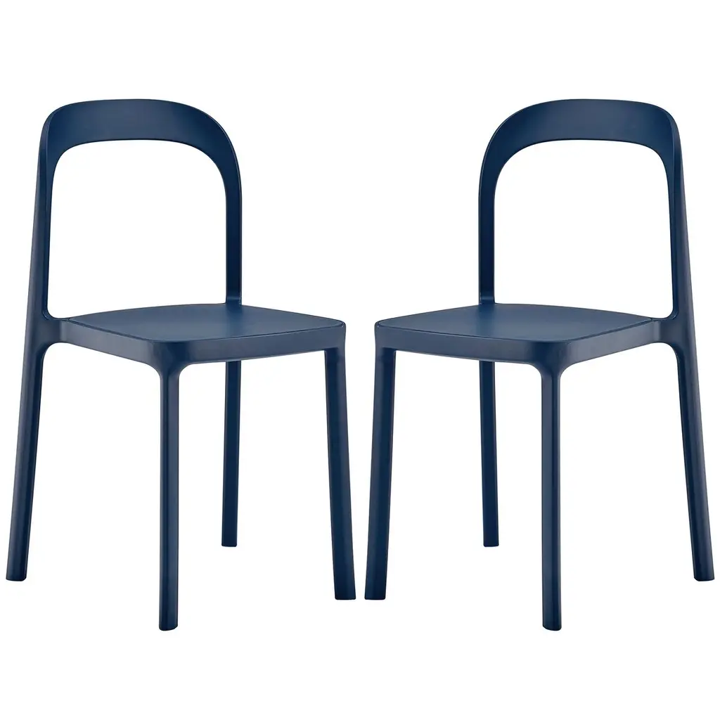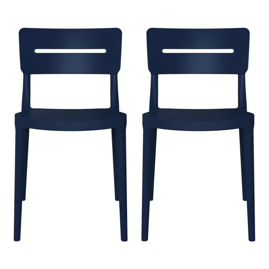 Westintrends Playa Outdoor Modern Stackable Plastic Patio Dining Chairs (Set Of 2), Navy Blue