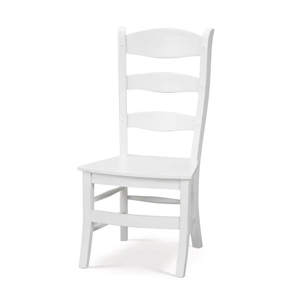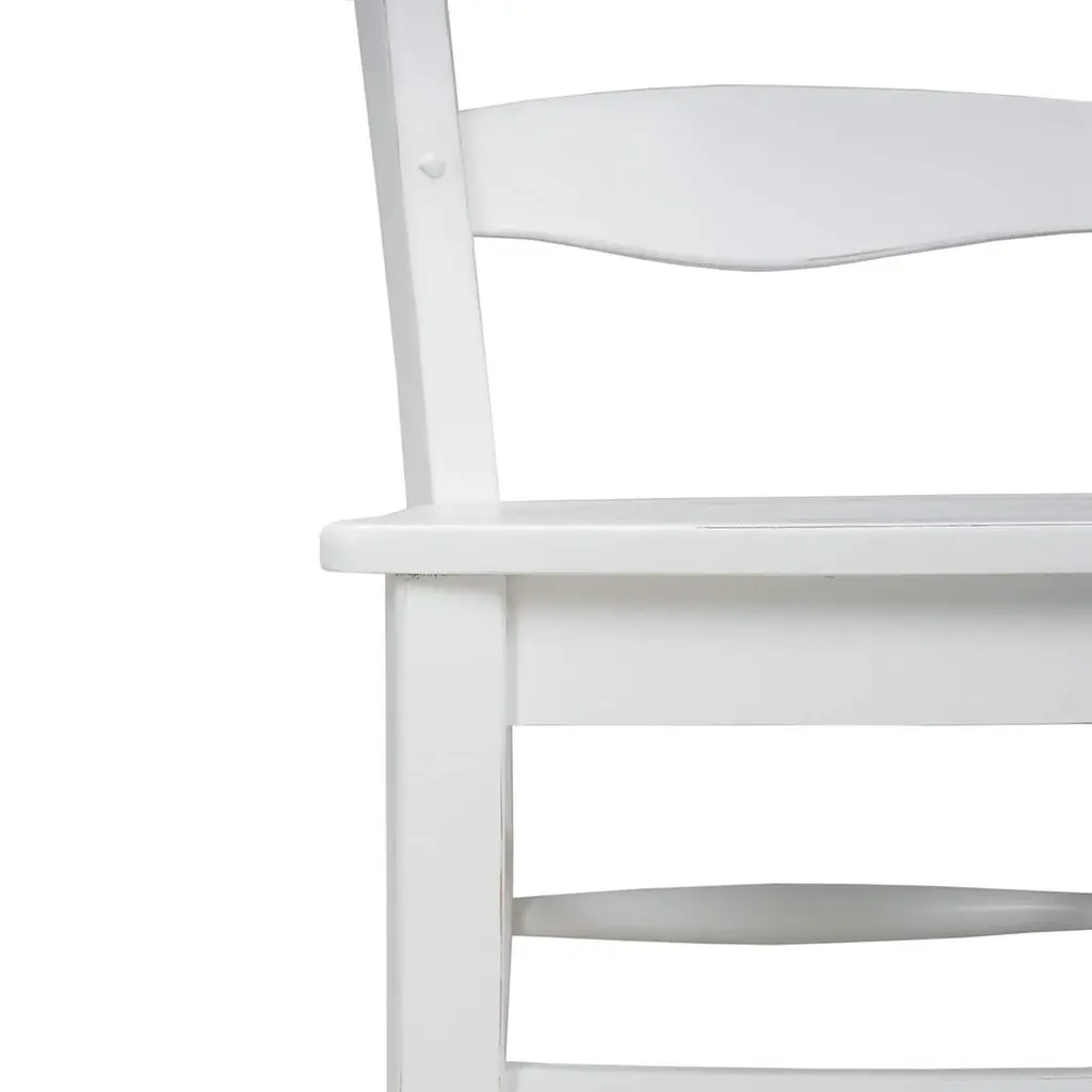 Featuring a classic ladder-back design and distinctive pegged construction, this chair showcases a handcrafted appeal that enhances any dining space. Finished in a lightly distressed architectural white paint, adding warmth and authenticity to your home.Built from solid wood, this chair offers both durability and comfort, making it a versatile option for casual meals or formal gatherings. Its timeless design makes it a seamless fit for both rustic and contemporary interiors.Dimensions: 21" W x 22" D x 43" HSeat - 18"Custom finish options are also available. Contact us to learn more.