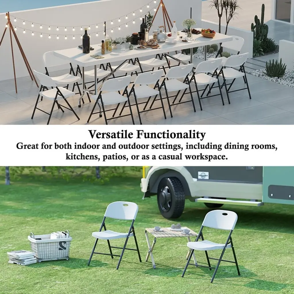 White Folding Chairs 4 Pack, Pp Injection Folding Chair, For Outdoor, Indoor, Dining, Party - White