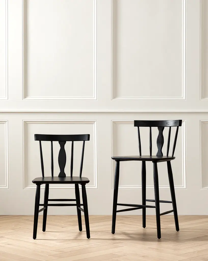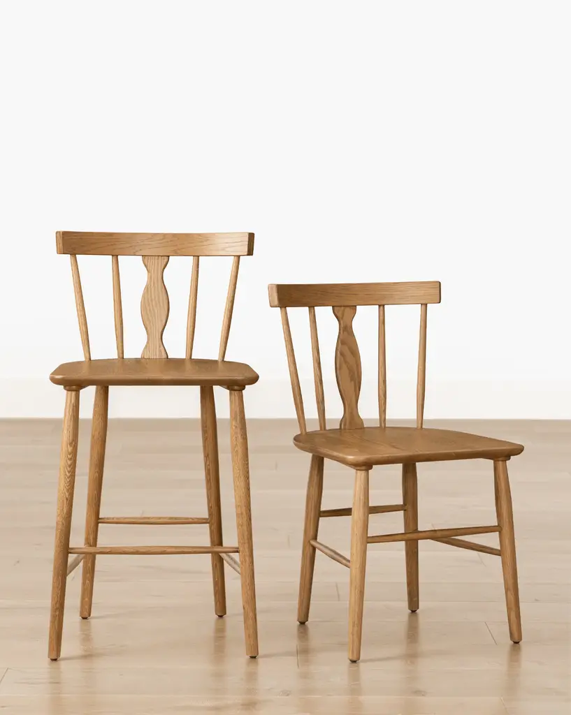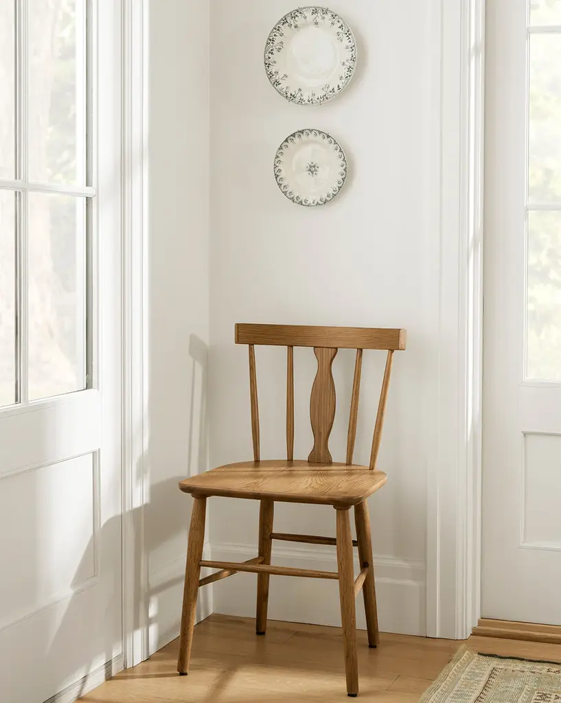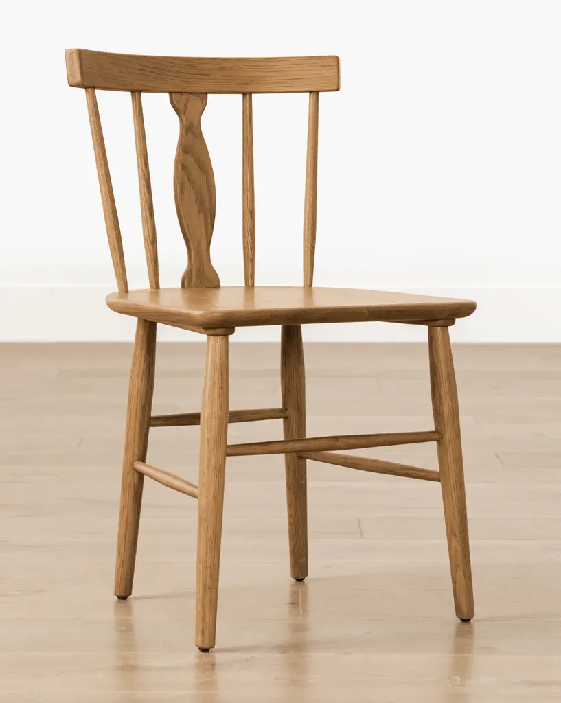 Featuring a spindle back design and clean lines, our Whittaker Chair combines classic charm with modern elegance for a look that complements a variety of dining space aesthetics. Crafted with high-quality solid oak, in your choice of a Honey Oak or Black Ash finish, it brings lasting durability and timeless appeal to your dining space.