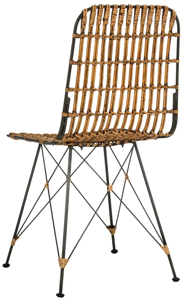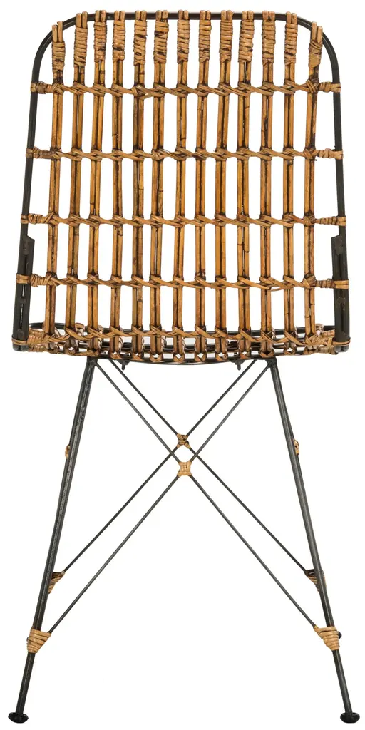 Crafted with fine, graphically sculpted lines, this modern natural brown wicker dining chair was designed to uphold the rigorous aesthetic standards of the contemporary host. it's sculptural metal legs and chic vintage style lend character to any soiree. Dust regularly with a soft, dry cloth. Never use oiled or treated cloths on lacquered finishes. Some finishes can be wiped with a damp (not wet) cloth, followed at once by rubbing with a dry cloth to remove fingerprints and smudges. For persistent spots, gently clean with a soft cloth and a solution of water and mild soap, make sure to wipe dry. Use adhesive felt pads, coasters and placemats to protect your furniture. Some assembly required.
