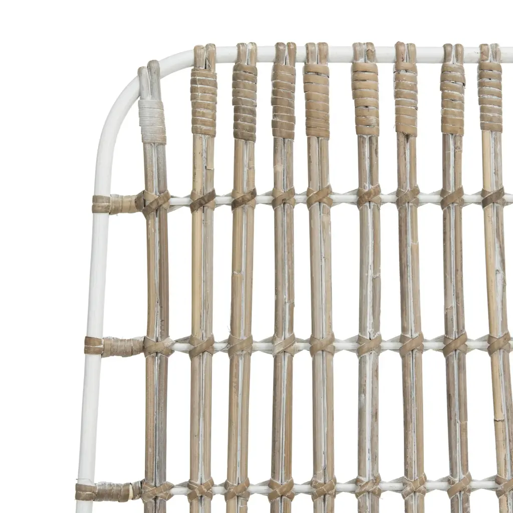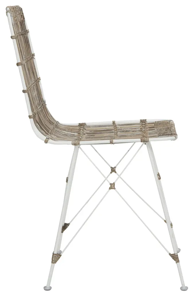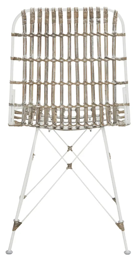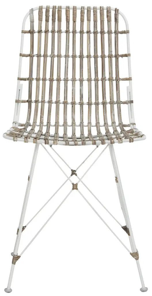 Crafted with fine, graphically sculpted lines, this modern white wicker dining chair was designed to uphold the rigorous aesthetic standards of the contemporary host. it's sculptural metal legs and chic vintage style lend character to any soiree. Dust regularly with a soft, dry cloth. Never use oiled or treated cloths on lacquered finishes. Some finishes can be wiped with a damp (not wet) cloth, followed at once by rubbing with a dry cloth to remove fingerprints and smudges. For persistent spots, gently clean with a soft cloth and a solution of water and mild soap, make sure to wipe dry. Use adhesive felt pads, coasters and placemats to protect your furniture. Some assembly required.