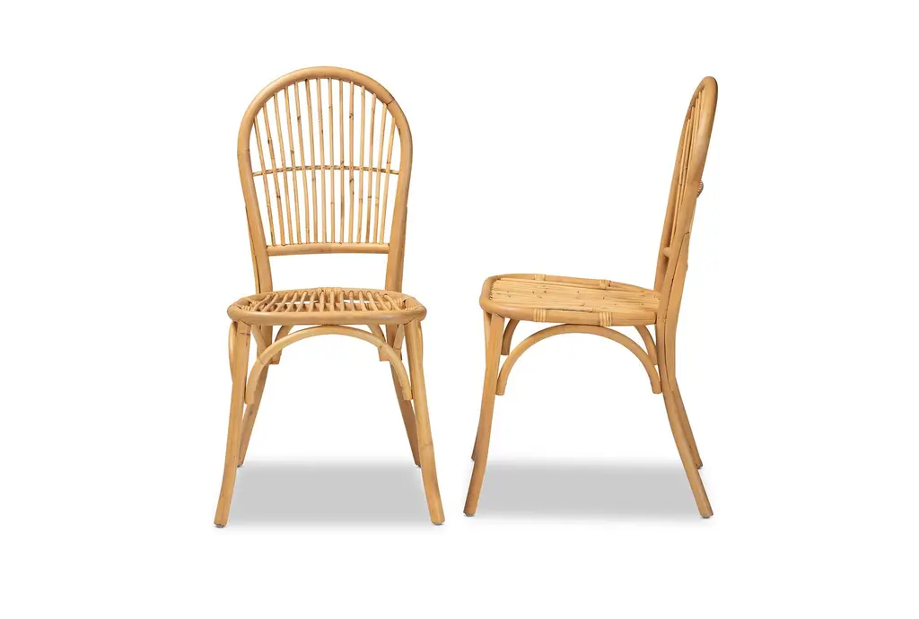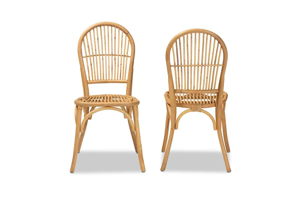 Wina Modern Bohemian Natural Brown Rattan Dining Chair Set Of 2 | Woven | Armless