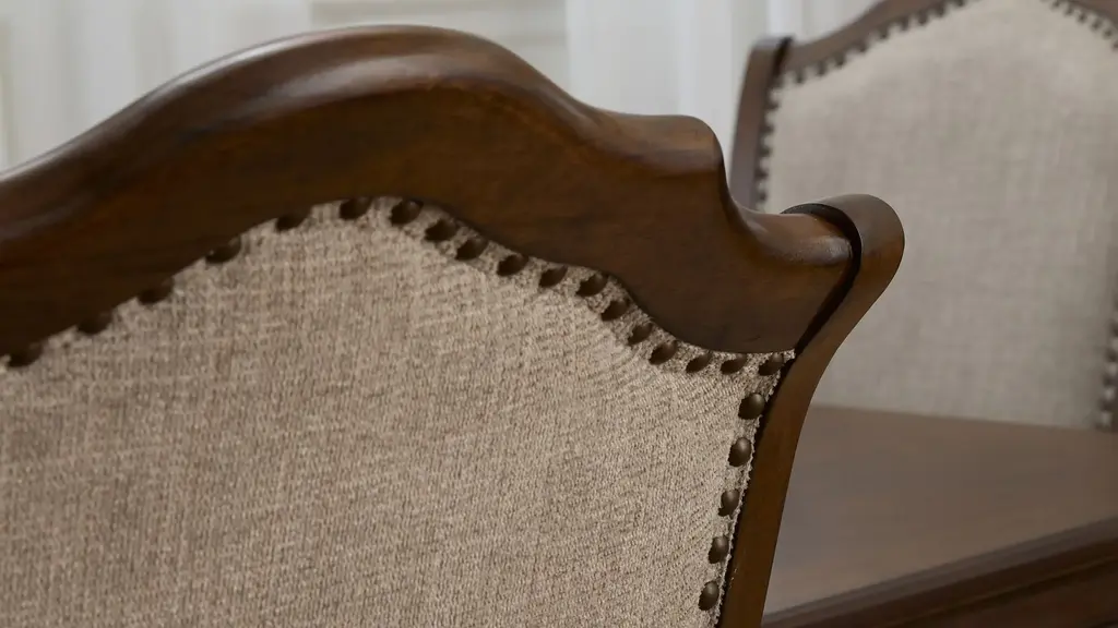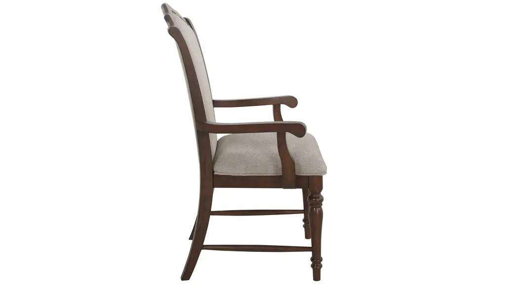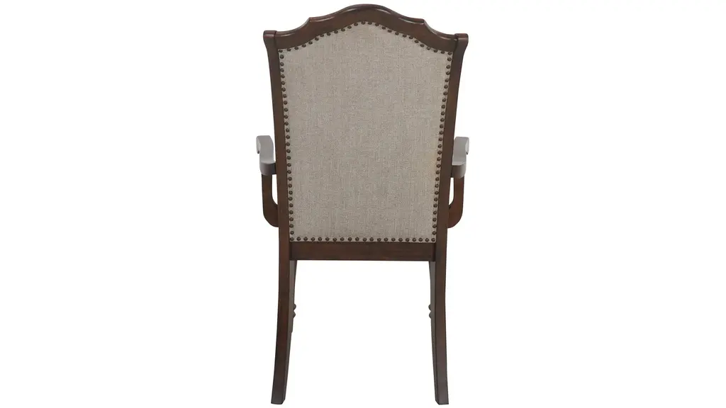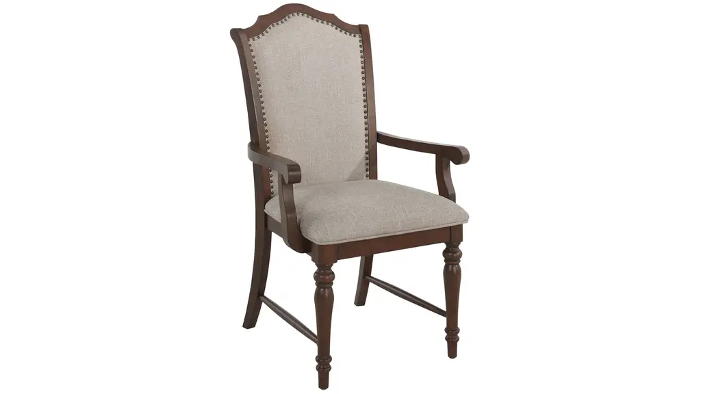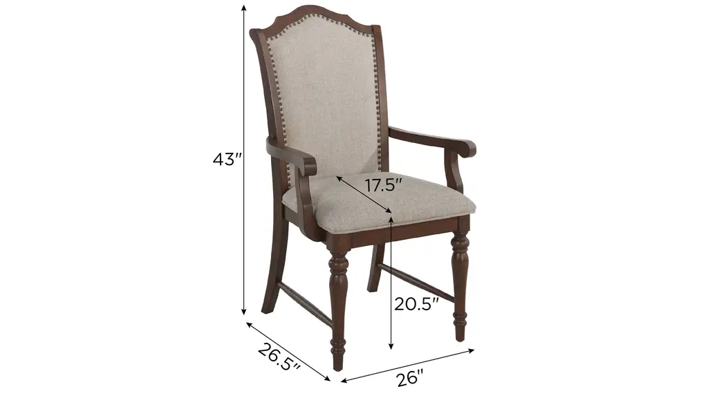 The elegant Winchester armchair is a terrific choice for formal dinners and gatherings. The cherry finish with polyester upholstery and nailhead trim are the perfect blend of style and comfort. It's more than a chai -it's an invitation to extend the evening and linger around the dining table.