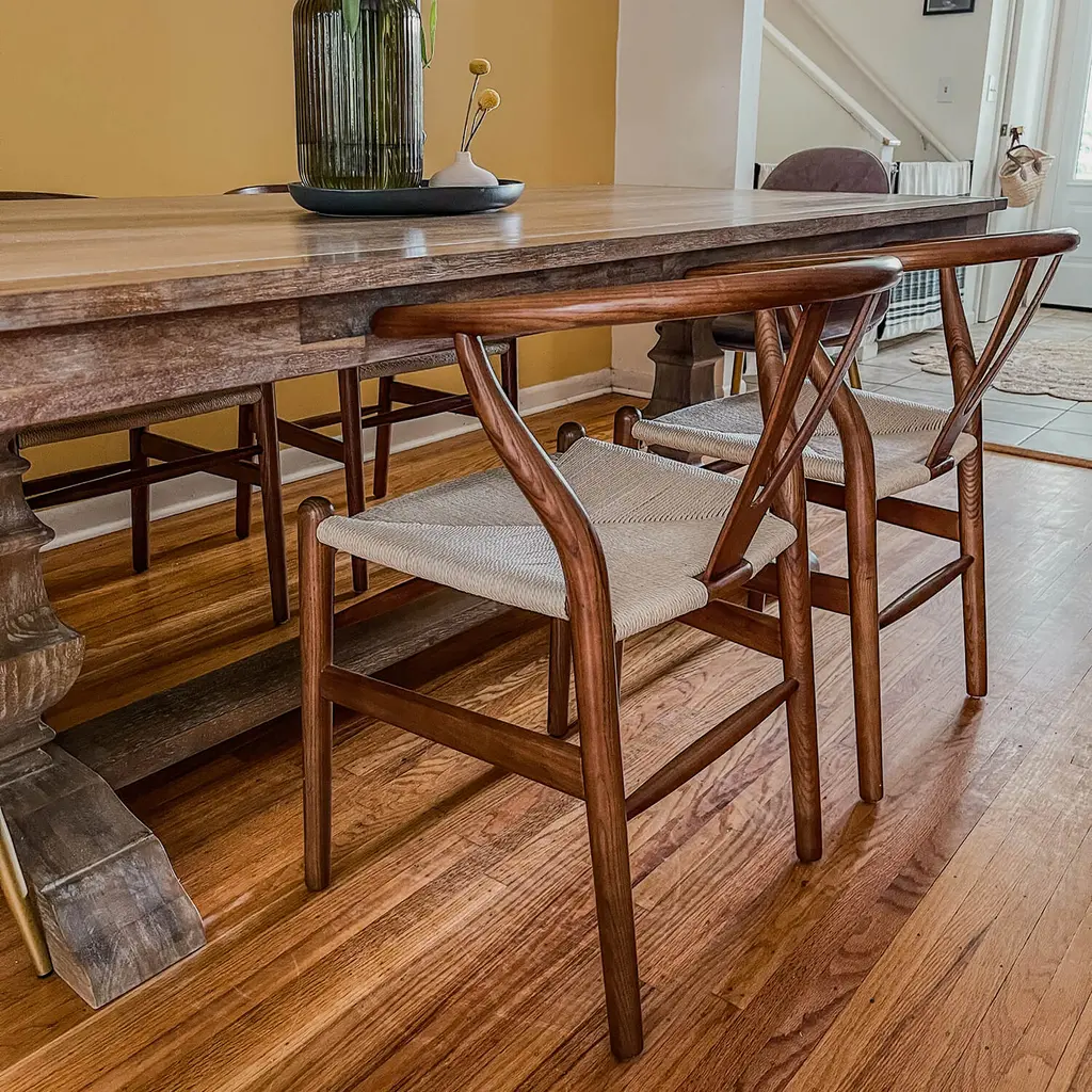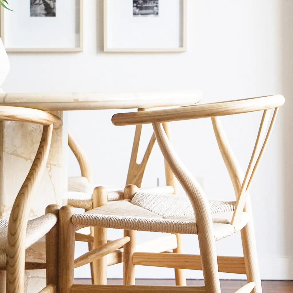 The light, sculptural Wishbone Chair was exactly what was needed during a time of heavier forms that were popular in the 1950's. Using the best natural materials, the sculptural Hans Wegner Wishbone Dining Chair is made to last for generations and offers outstanding comfort.