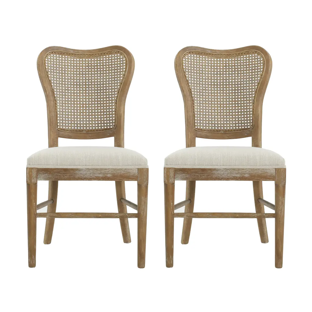 Wood And Woven Cane Dining Chairs, Set Of 2