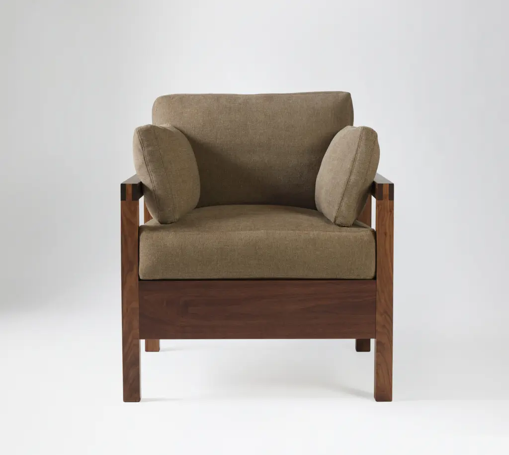 The BassamFellows Wood Frame Collection has become one of the brand’s classic signatures.Adding to the collection are upholstered dining chairs and upholstered stools.The Wood Frame Collection was originally designed to be remarkably lightweight and sophisticated without interfering with comfort. This was achieved by reducing the form of the chair to its essence — an exposed structural fine wood frame that integrates all elements of the chair, connecting seat, back and arms while creating a ‘caged’ effect, and a system of thin, layered cushions for ultimate comfort.The Wood Frame Dining Chairs and Stools take this concept and push them to their limits – the wood frame is even more cage like than the lounge chairs, with the members reduced to their absolute minimum. The wood elements produce the chair’s distinctive side profile and back view, two of the most important angles of any dining chair when viewed around a table. The outer corners are softly rounded, a BassamFellows signature, and the exposed rear frame becomes both a handle to maneuver the chair without touching the upholstery and a convenient place to hang a jacket or sweater.Cushions have also been slimmed to the absolute minimum without sacrificing comfort. The backrest is structural but designed with a non-rigid upper frame to keep its profile as thin as possible while building in flex for movement. Cushions are lightly tufted for a distinctly tailored appearance.