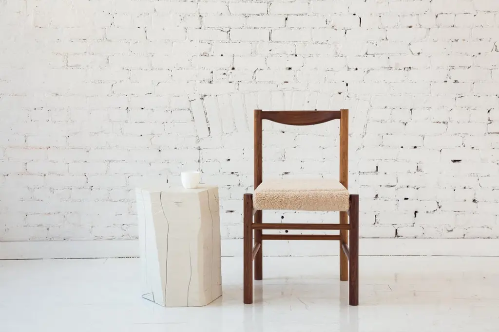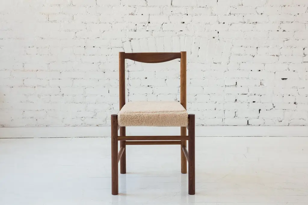 Wood Range Dining Chair In Walnut And Shearling By Fort Standard