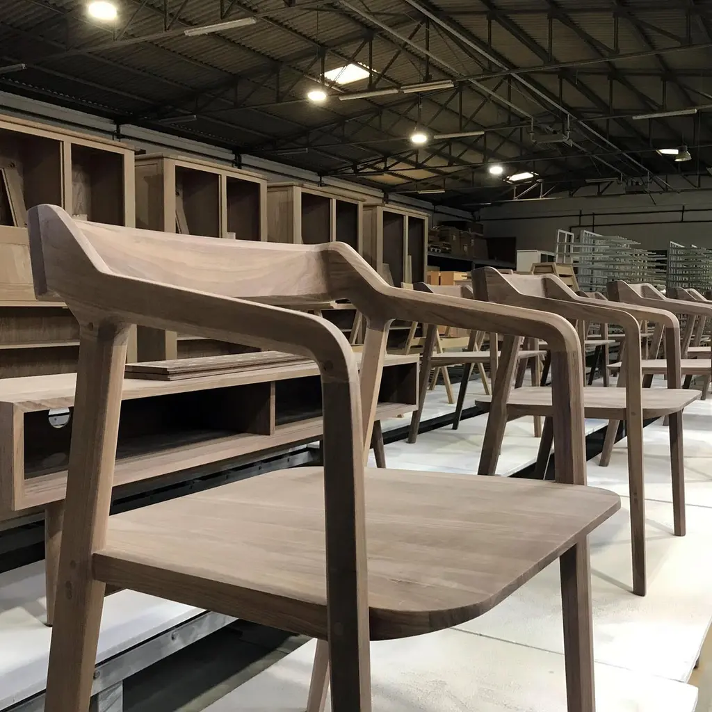 This chair delves into the contrast between weight and lightness through its all-wood construction. Its design exudes elegance, lifting it to a refined level, while the inherent weight and strength of solid wood ground it firmly. It's a perfect blend of wood's robustness and intricate design, making it an excellent addition to dining or working spaces. Available in oak or walnut finishes.Contact us for enquire about finish and size customizations.This product is fully made in Europe (EU) in compliance with European Union manufacturing and safety standards.We do our best to expedite production and to ship and deliver product within the listed lead time, however current lead times might be longer due to global shipping backlog and delays. These delays are out of our control and cannot be a reason to cancel an order.