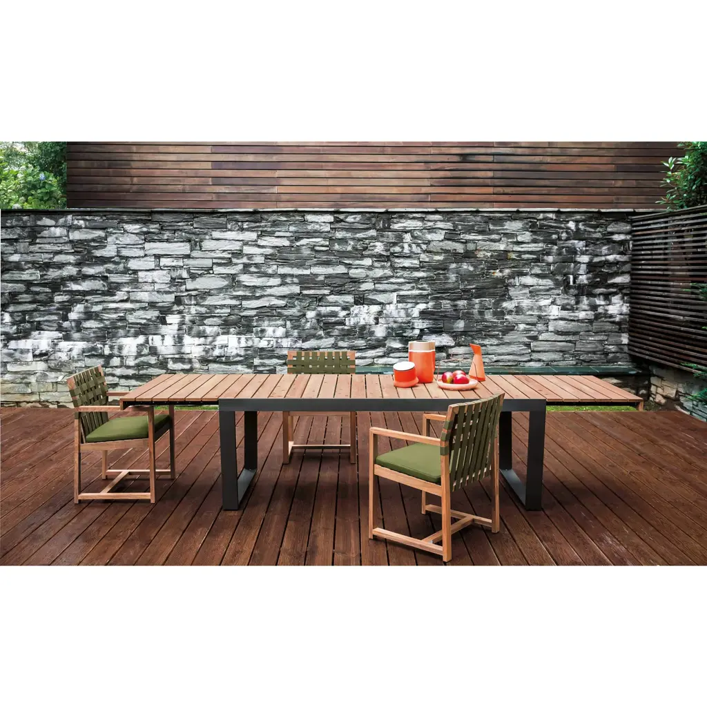 NETWORK chairs and benches are strongly marked by the presence of teak, the favoured material of this elegant collection of outdoor furniture which has represented and still represents the history and the soul of RODA. Chairs and benches are characterized by a solid teak structure combined, in the chair only, with a backrest made of woven polyester or acrylic belts.