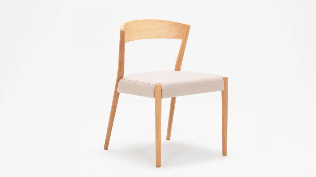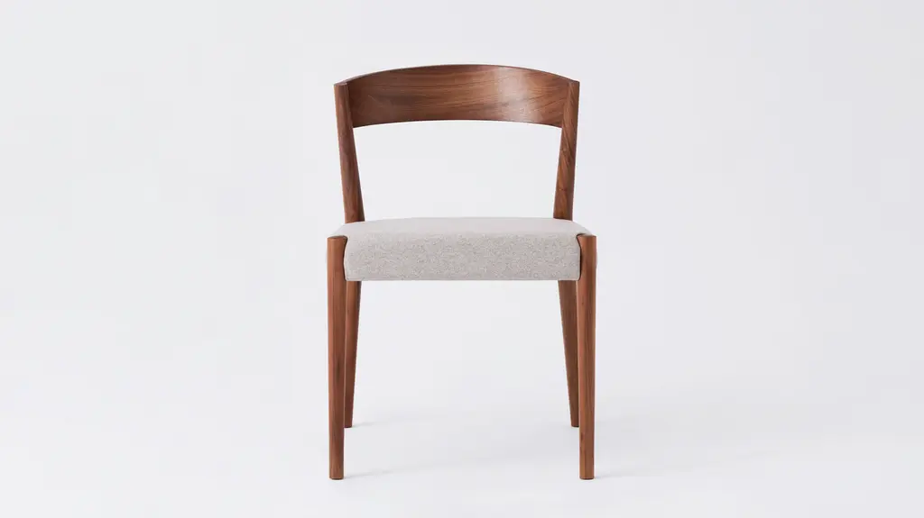 Solid and elegant. The Wren dining chairs combine solid wood and upholstery in a delicately detailed dining chair. With exposed solid wood dowel legs and a softly curved back, the Wren dining chair comes either with a fully upholstered seat back, or with a curved bentwood back.