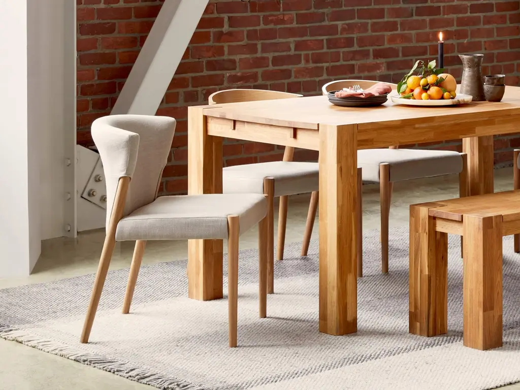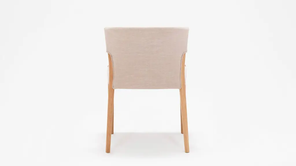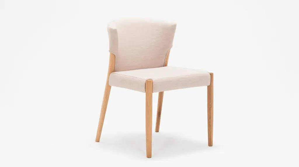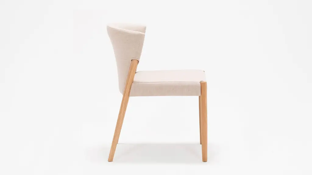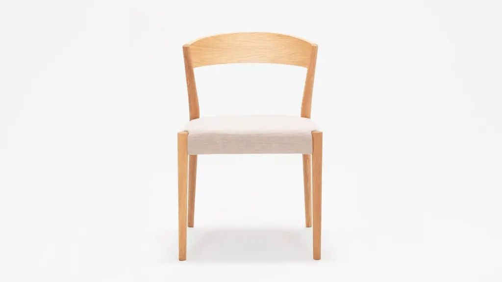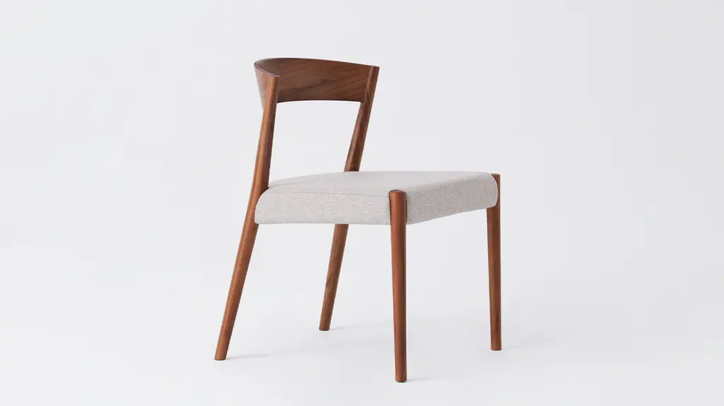 Solid and elegant. The Wren dining chairs combine solid wood and upholstery in a delicately detailed dining chair. With exposed solid wood dowel legs and a softly curved back, the Wren dining chair comes either with a fully upholstered seat back, or with a curved bentwood back.
