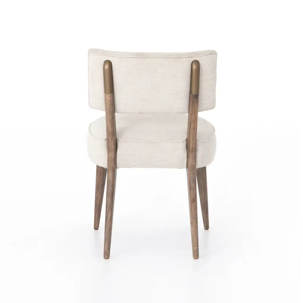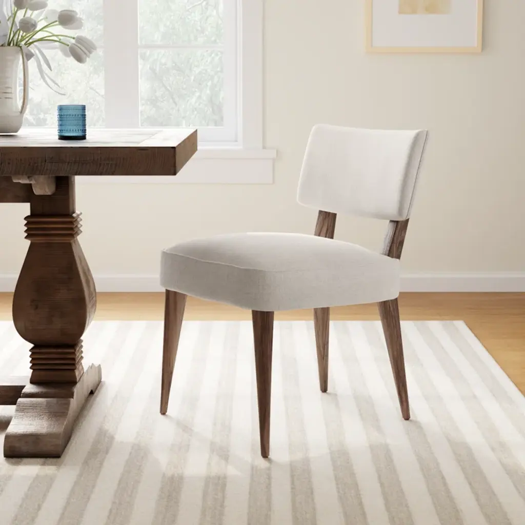 With cone-tapered para wood legs and ivory performance-grade seating of linen blend, this crisp, clean dining style is durably designed for dinners and parties alike. Performance fabrics are specially created to withstand spills, stains, high traffic, and wear, ensuring long-term comfort and unmatched durability.