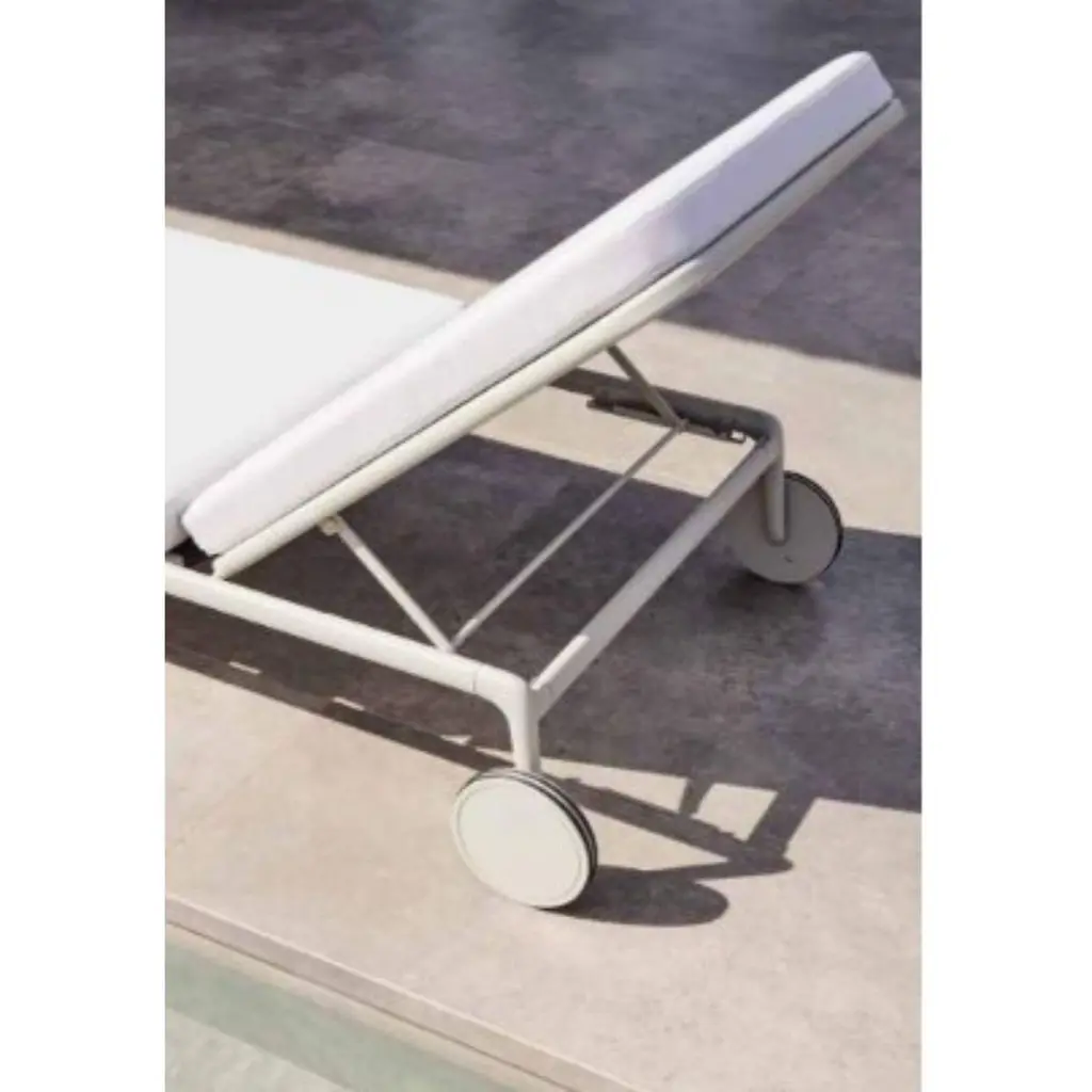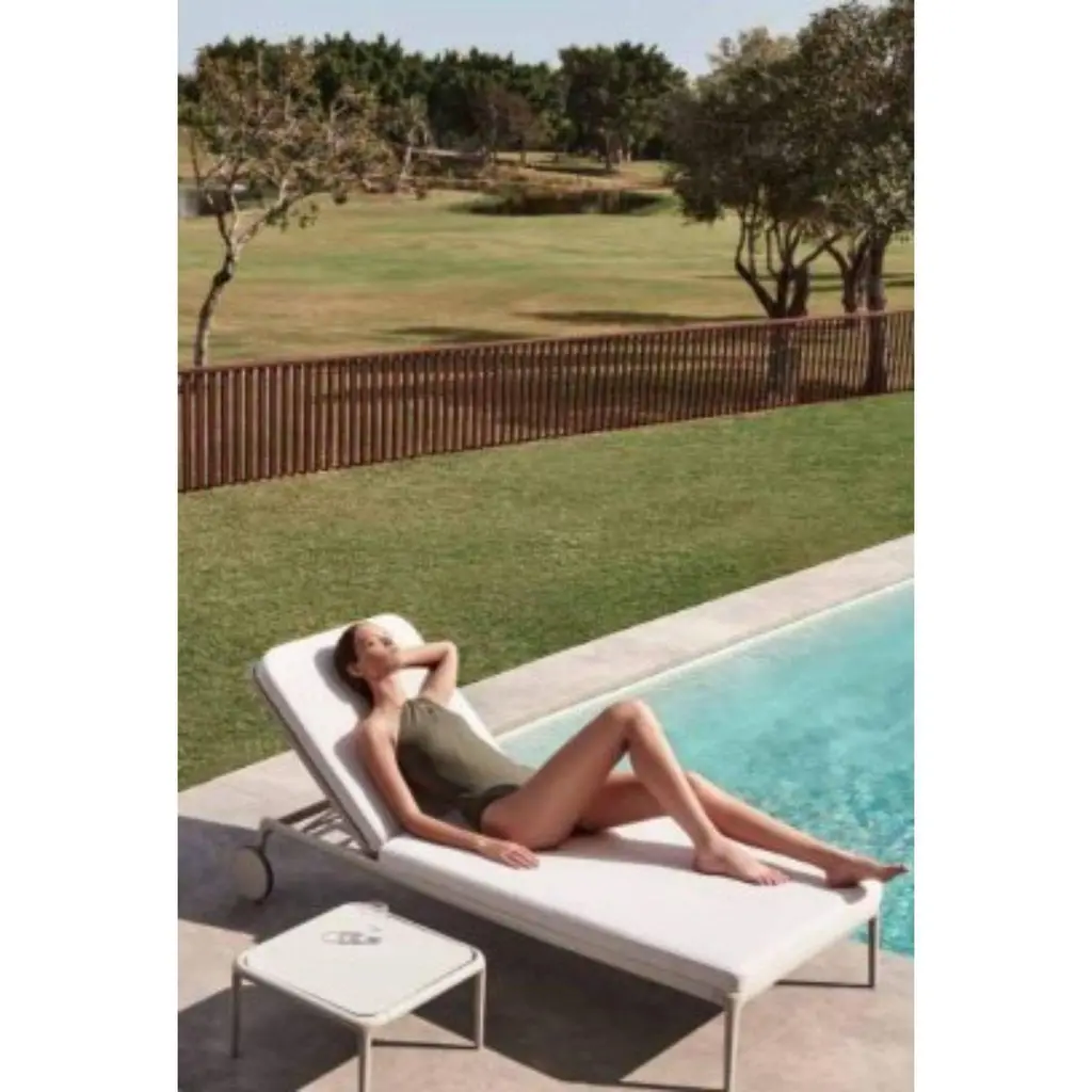 Xaloc beige sun chair by MOWEEDimensions: D82 x W195 x H33 cmMaterial: Aluminum, TextileWeight: 24 kgAlso Available in different colors and finishes. Xaloc synthesizes the lines of interior furniture to extrapolate to the exterior, creating an elegant and versatile collection that can coexist in both contexts. The textile of its elements also want to represent this concern to provide the exterior with the warmth of the interior furniture. The name Xaloc comes from the wind with the same name. A strong wind typical of the Mediterranean area. A wind capable of eroding the environment it meets. The shapes of the collection represent this wind-induced erosion that generates natural and harmonic forms.Möwee is part of the work, effort and commitment of Gaviota, a leading company in the outdoor sector. It was set up as an independent venture to broaden horizons in the outdoor furniture world, with its own distinctive character and way of doing things. Freshness, simplicity, quality and design are at the heart of its DNA.