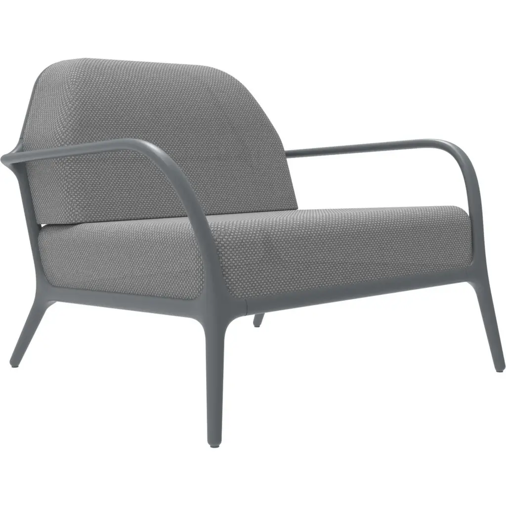 Xaloc Grey Amchair by MOWEEDimensions: D 100 x W 102 x H 81 cm (Seat Height 42 cm)Material: Aluminum, UpholsteryWeight: 29 kgAlso available in different colours and finishes. Please contact us. Xaloc synthesizes the lines of interior furniture to extrapolate to the exterior, creating an elegant and versatile collection that can coexist in both contexts. The textile of its elements also want to represent this concern to provide the exterior with the warmth of the interior furniture. The name Xaloc comes from the wind with the same name. A strong wind typical of the Mediterranean area. A wind capable of eroding the environment it meets. The shapes of the collection represent this wind-induced erosion that generates natural and harmonic forms.Möwee is part of the work, effort and commitment of Gaviota, a leading company in the outdoor sector. It was set up as an independent venture to broaden horizons in the outdoor furniture world, with its own distinctive character and way of doing things. Freshness, simplicity, quality and design are at the heart of its DNA.