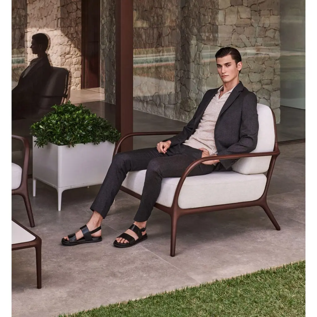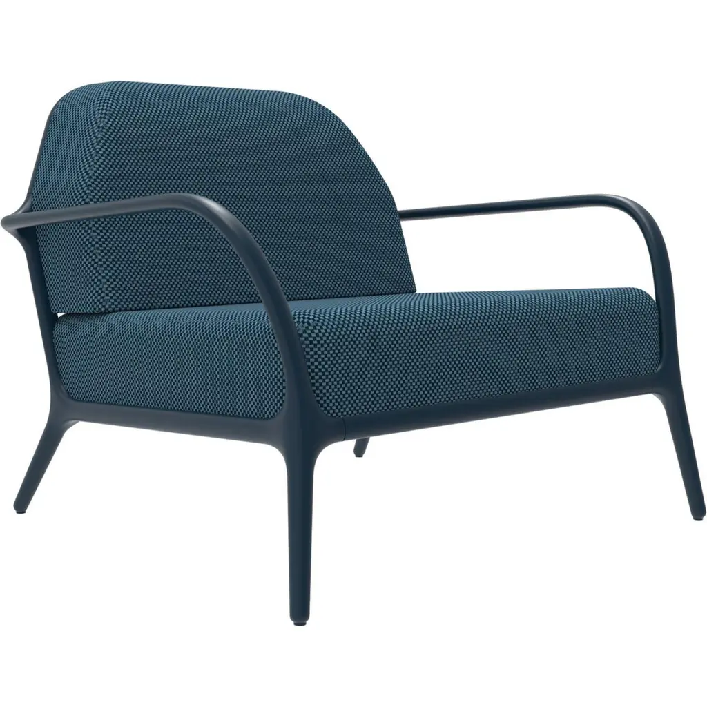Xaloc Navy Amchair by MOWEEDimensions: D 100 x W 102 x H 81 cm (Seat Height 42 cm)Material: Aluminum, UpholsteryWeight: 29 kgAlso available in different colours and finishes. Please contact us. Xaloc synthesizes the lines of interior furniture to extrapolate to the exterior, creating an elegant and versatile collection that can coexist in both contexts. The textile of its elements also want to represent this concern to provide the exterior with the warmth of the interior furniture. The name Xaloc comes from the wind with the same name. A strong wind typical of the Mediterranean area. A wind capable of eroding the environment it meets. The shapes of the collection represent this wind-induced erosion that generates natural and harmonic forms.Möwee is part of the work, effort and commitment of Gaviota, a leading company in the outdoor sector. It was set up as an independent venture to broaden horizons in the outdoor furniture world, with its own distinctive character and way of doing things. Freshness, simplicity, quality and design are at the heart of its DNA.