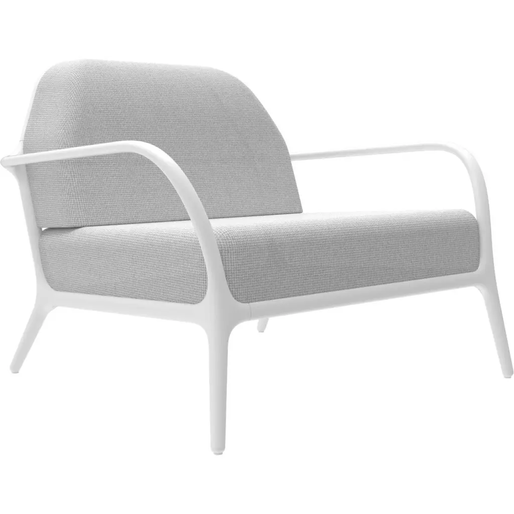 Xaloc White Amchair by MOWEEDimensions: D 100 x W 102 x H 81 cm (Seat Height 42 cm)Material: Aluminum, UpholsteryWeight: 29 kgAlso available in different colours and finishes. Please contact us. Xaloc synthesizes the lines of interior furniture to extrapolate to the exterior, creating an elegant and versatile collection that can coexist in both contexts. The textile of its elements also want to represent this concern to provide the exterior with the warmth of the interior furniture. The name Xaloc comes from the wind with the same name. A strong wind typical of the Mediterranean area. A wind capable of eroding the environment it meets. The shapes of the collection represent this wind-induced erosion that generates natural and harmonic forms.Möwee is part of the work, effort and commitment of Gaviota, a leading company in the outdoor sector. It was set up as an independent venture to broaden horizons in the outdoor furniture world, with its own distinctive character and way of doing things. Freshness, simplicity, quality and design are at the heart of its DNA.