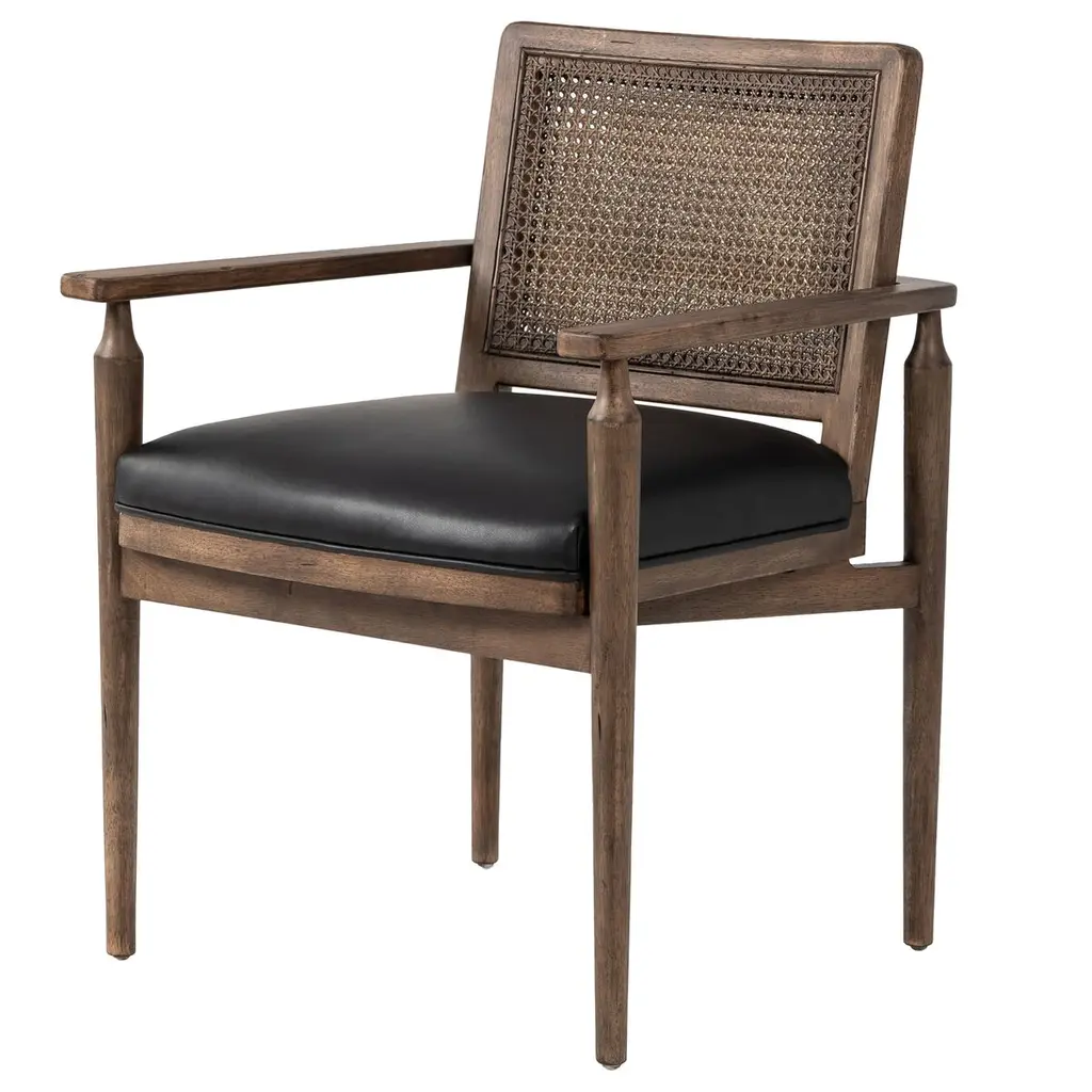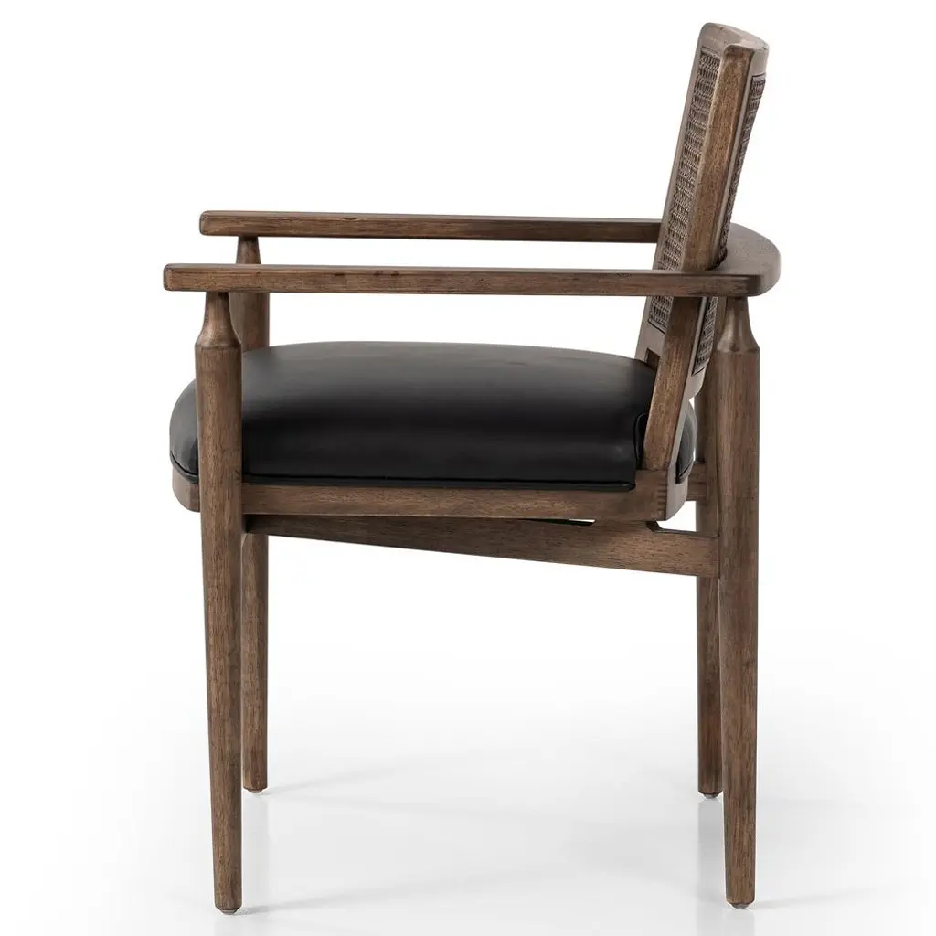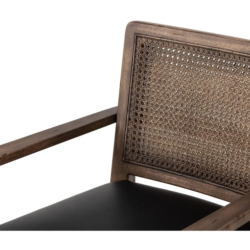 Xander Rustic Lodge Brown Woven Cane Black Upholstered Leather Dining Arm Chair