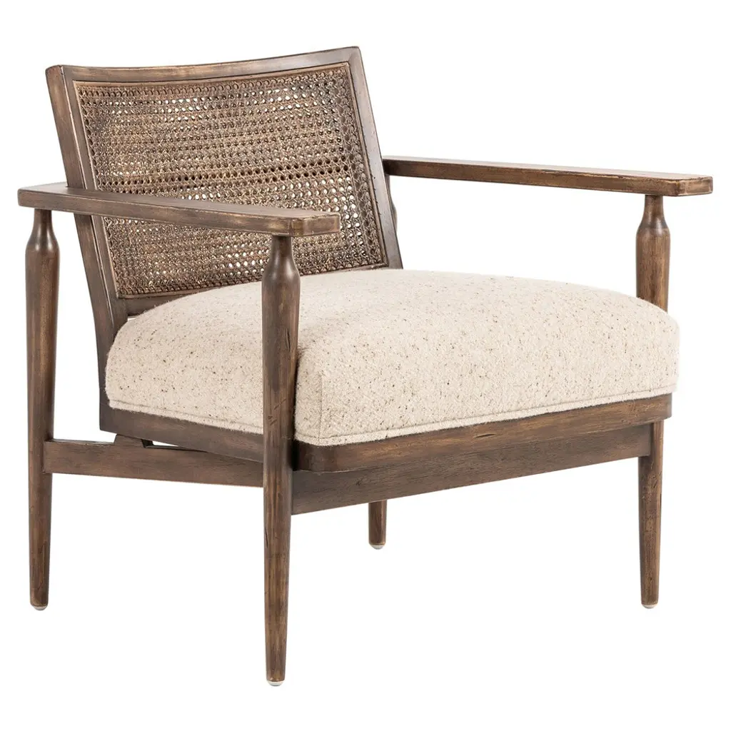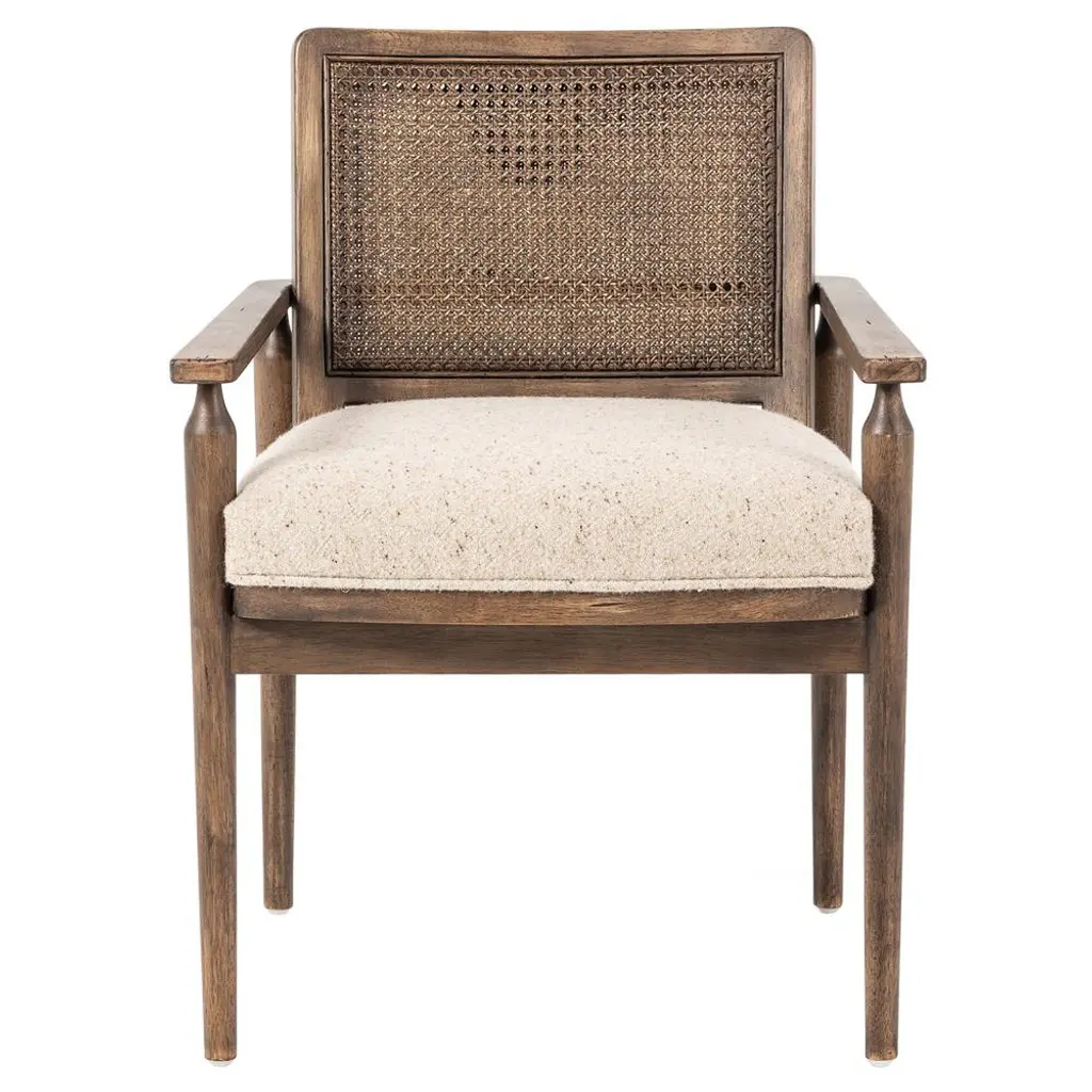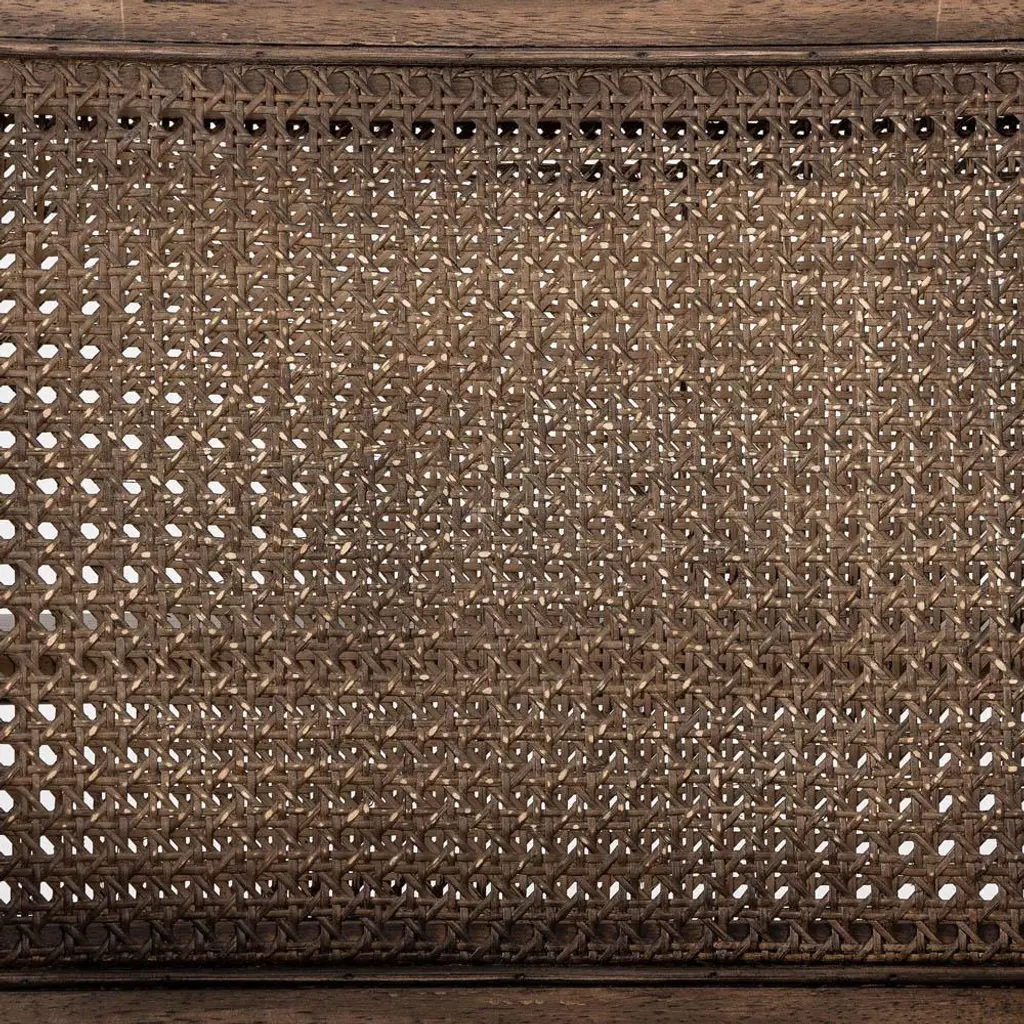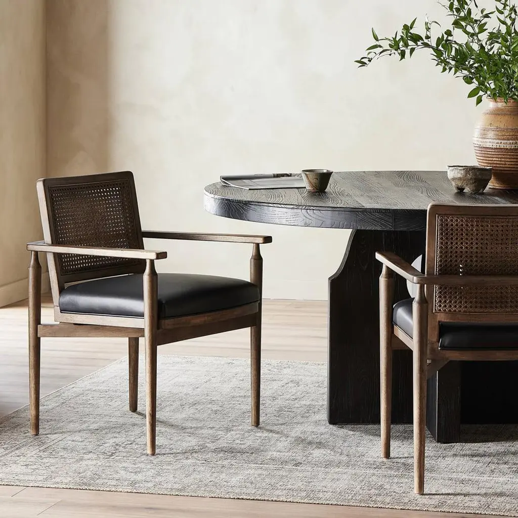 Xander Rustic Lodge Brown Woven Cane Black Upholstered Leather Dining Arm Chair