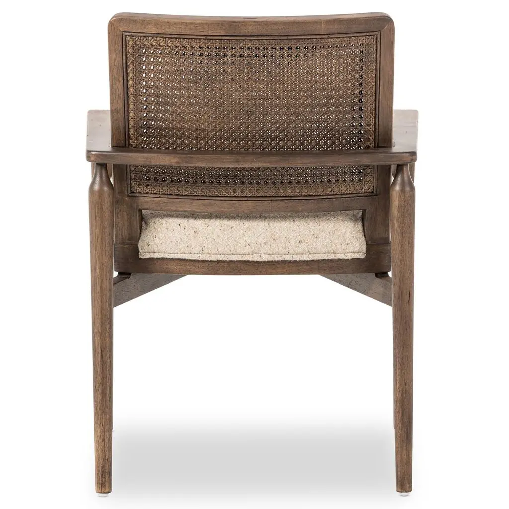 Xander Rustic Lodge Brown Woven Cane Taupe Upholstered Linen Dining Arm Chair