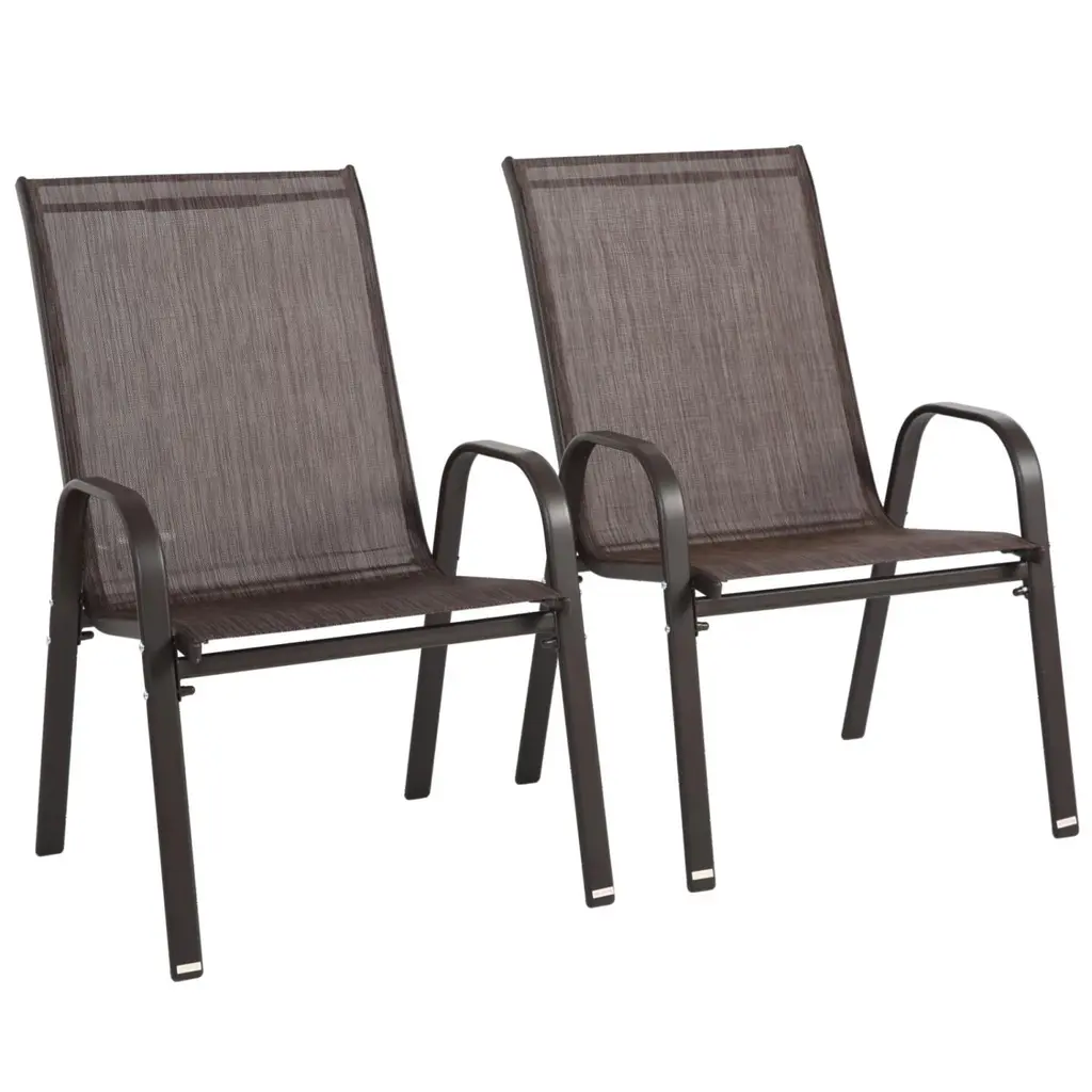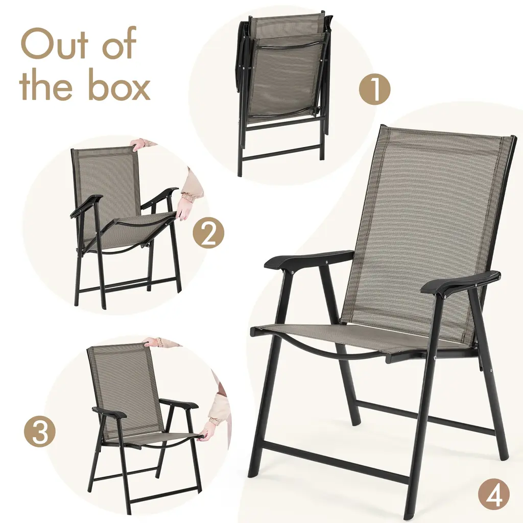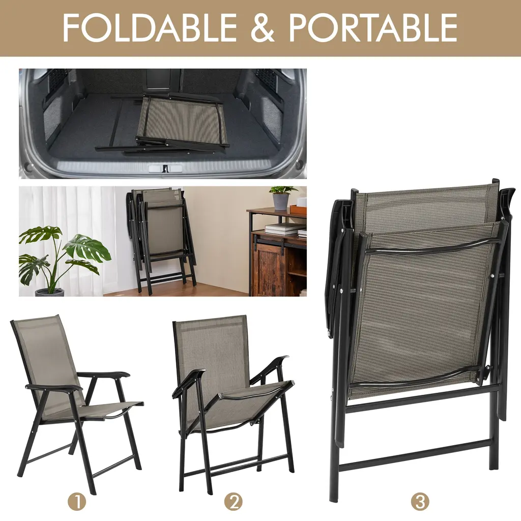 Yaheetech Set Of 2 Outdoor Texteline Folding Dining Chairs With Backrest Black - Brown