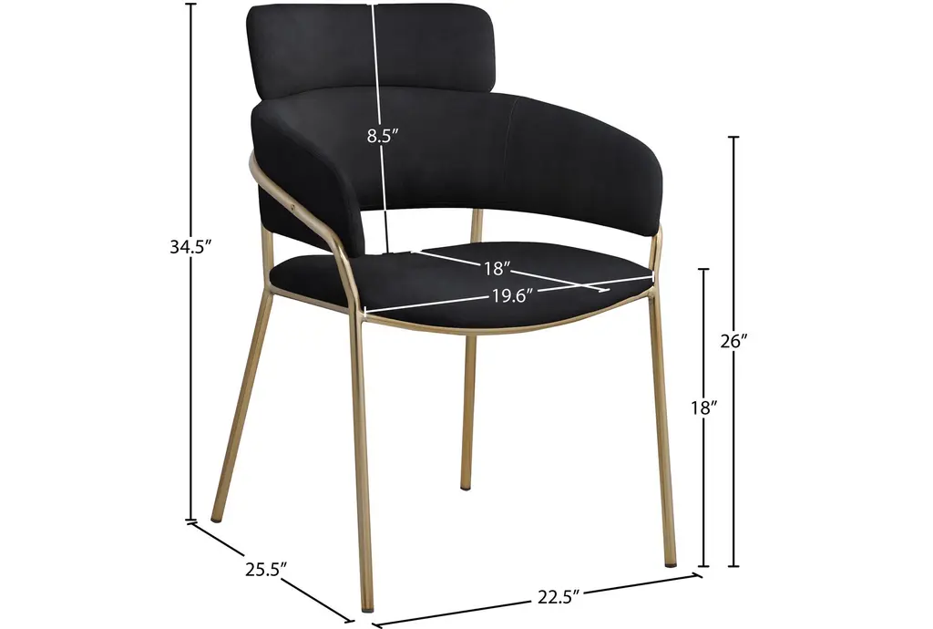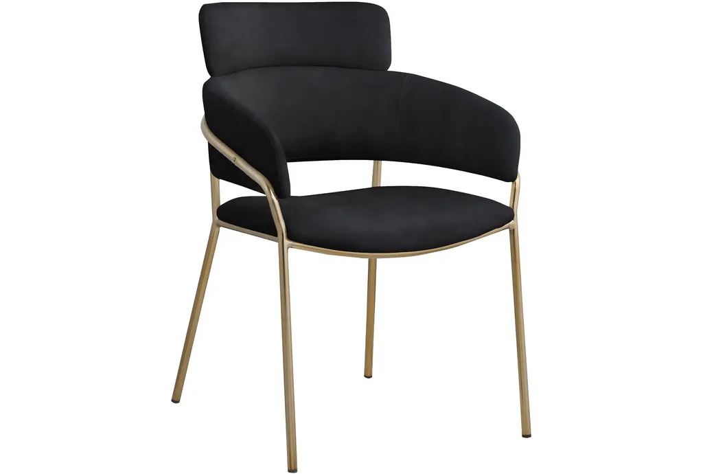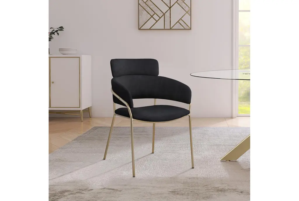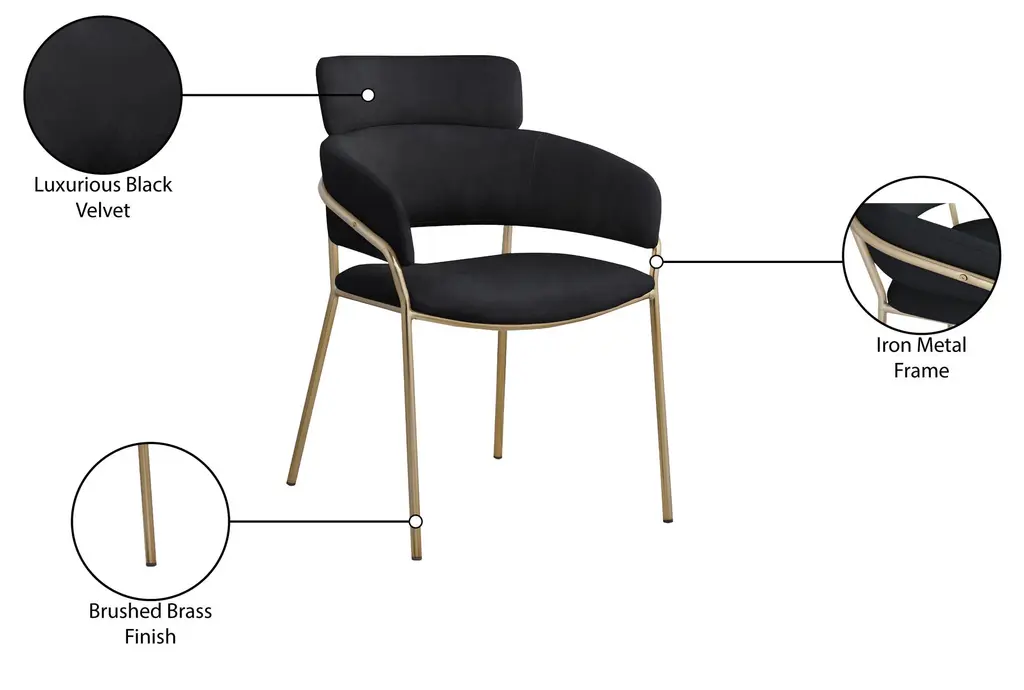 Yara Black Velvet Dining Chair With Gold Finish Set Of 2