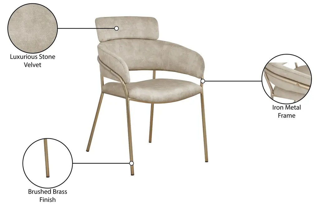 Yara Stone Velvet Dining Vanity Chair With Gold Finish
