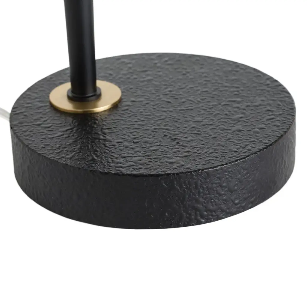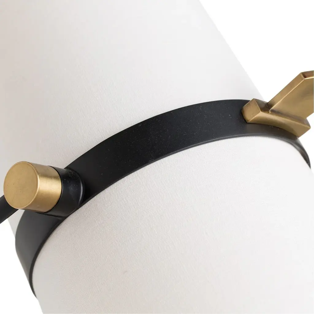 Boasting a truly sophisticated style, this modern desk lamp features a black iron vertical rod + a vintage brass finial. The off-white linen shade swivels and houses two light bulbs, creating an even light source.