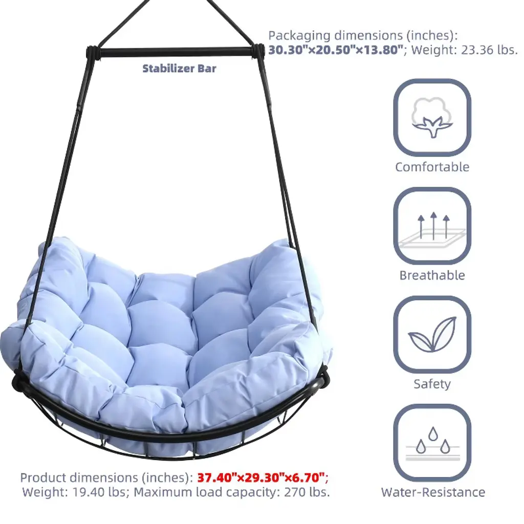 Yoocozz Hammock Chair Swing With Cushion - Blue Gray