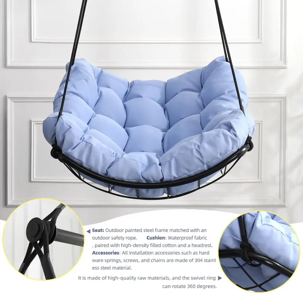 This hammock chair swing offers a comfortable and versatile seating solution for both indoor and outdoor use. With its oversized cushion, durable materials, and easy installation, it provides a relaxing spot for patios, porches, bedrooms, gardens, courtyards, and balconies. The sturdy steel bar and anti-slip safety rings ensure stability and safety, making it perfect for enjoying leisure time in any setting.