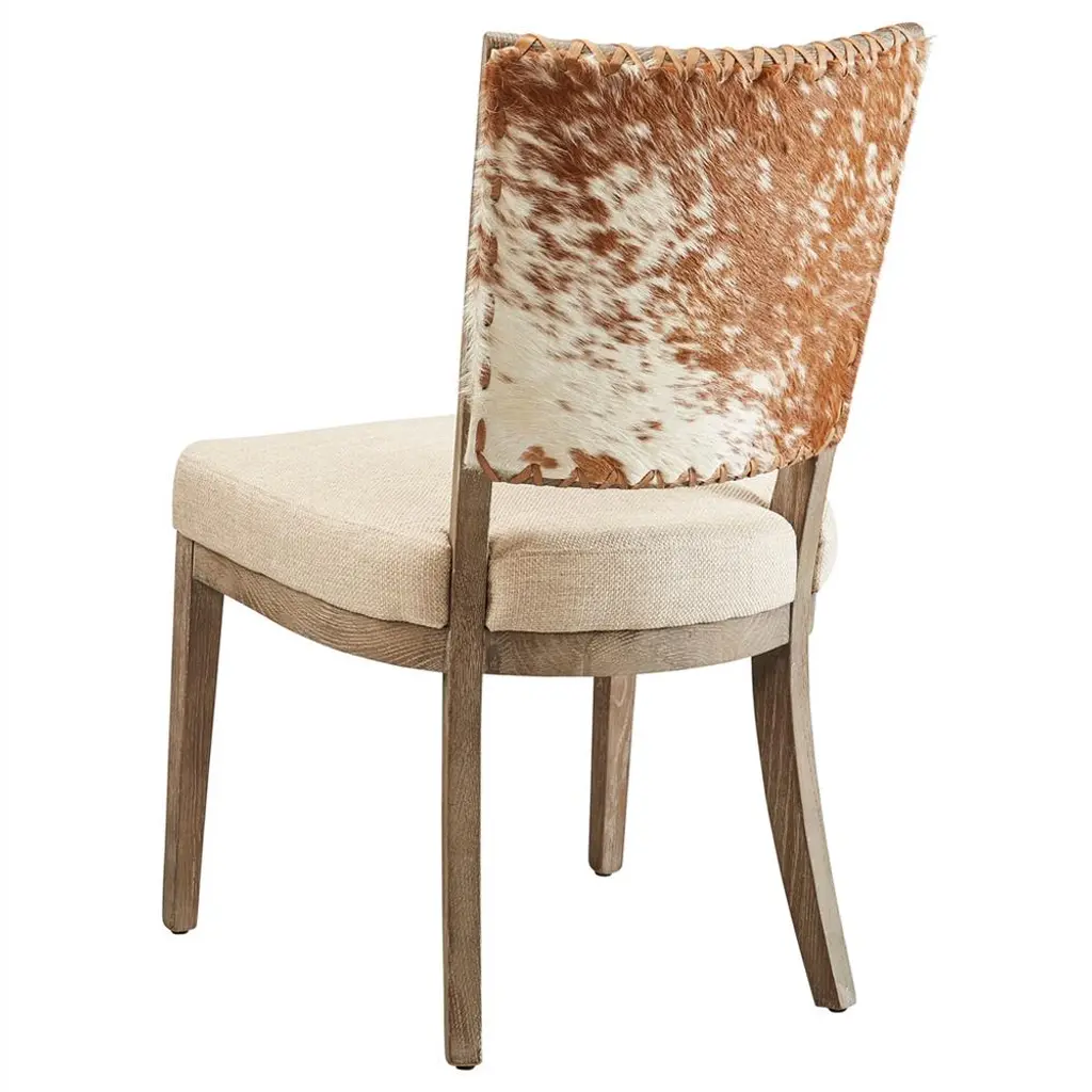 Zainab French Beige Cushion Brown Leather Hide Back Grey Oak Wood Side Chair