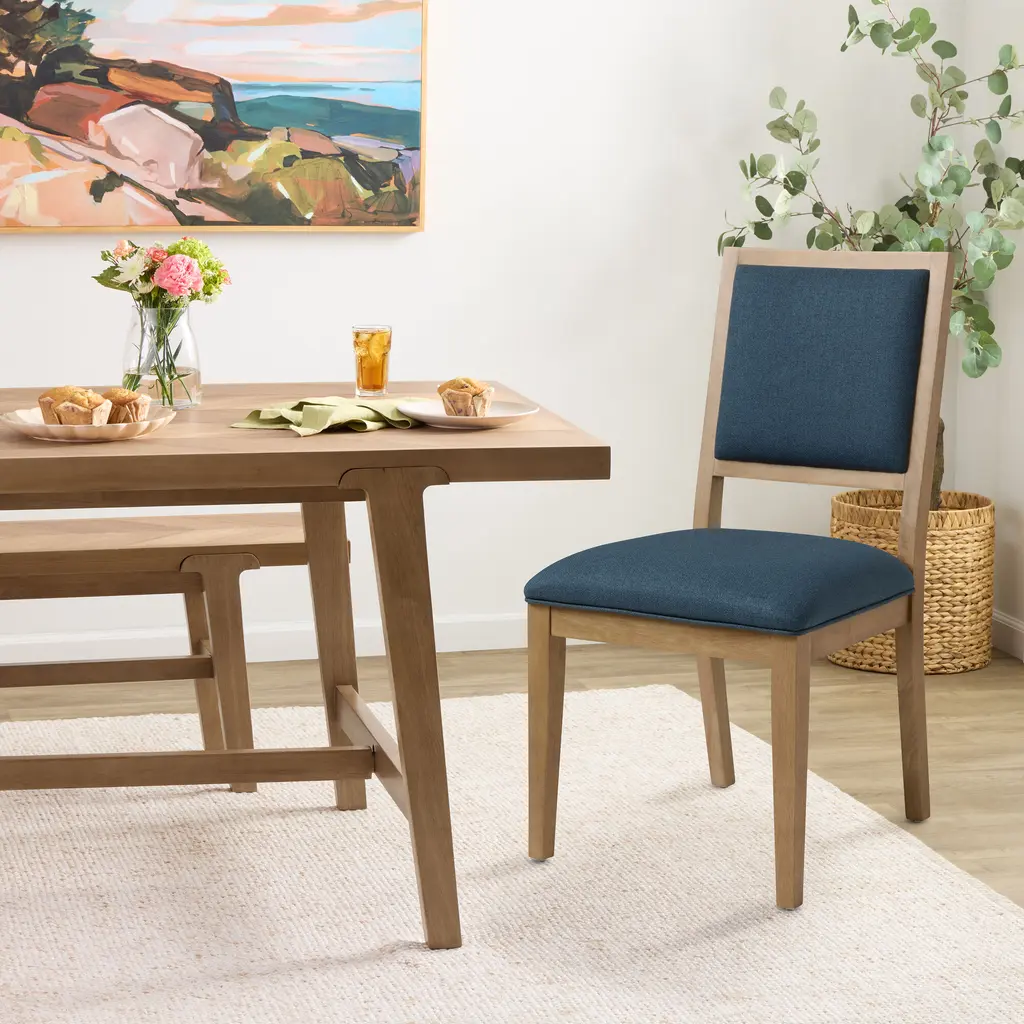 Crafted with a split-back wood frame in a warm-wheat finish, our Zane dining chair features plush, pillowy upholstery in a choice of fashionable colors. Streamlined for modern settings with a clean, straight back and squared legs, its warmly inviting wood finish adds a touch of refined farmhouse style to an elegant silhouette. Casually elegant and wonderfully cozy, this versatile side chair is a signature World Market value.