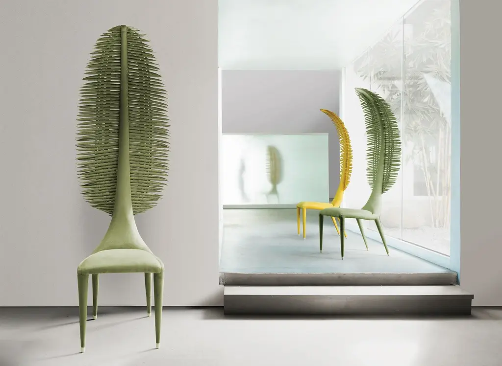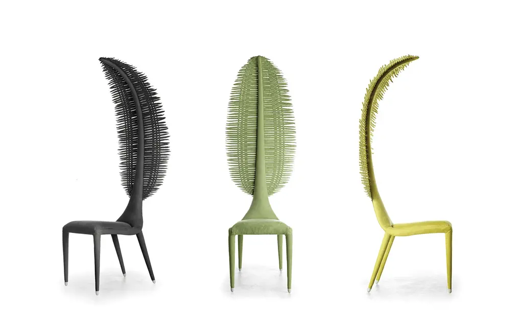 With its dramatic plume and generous scale, Zaza is not your typical chair. A whimsical take on nature, the seemingly delicate fronds wrapped in microfiber not only provide supple yet ample support, but a theatrical backdrop to any space as well.