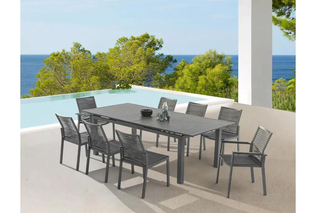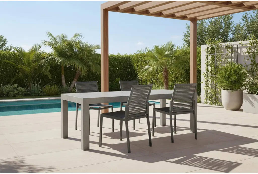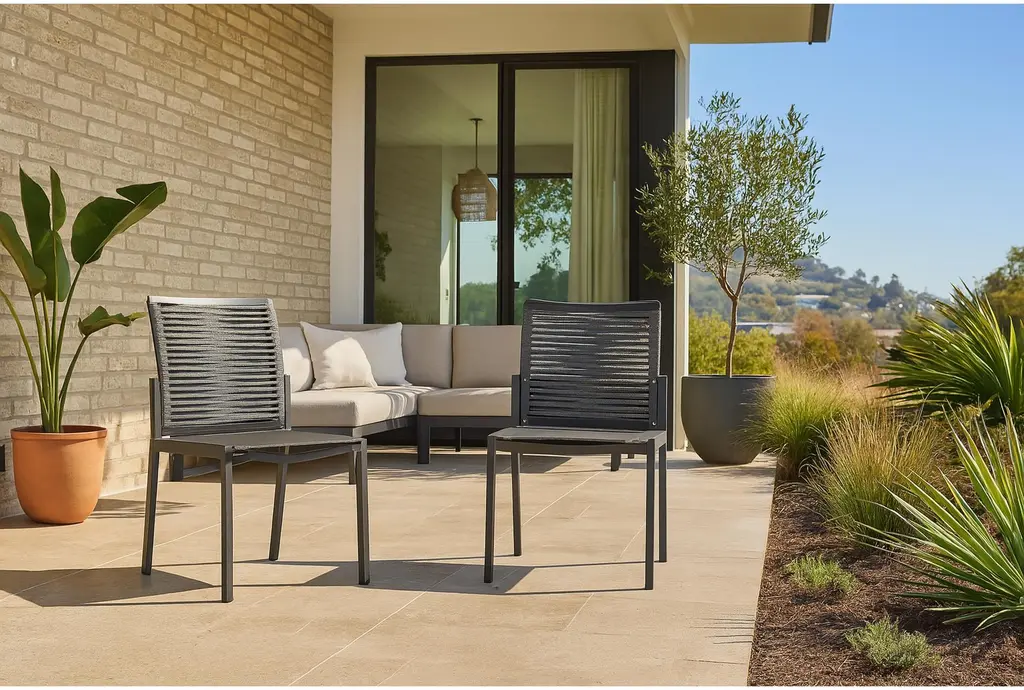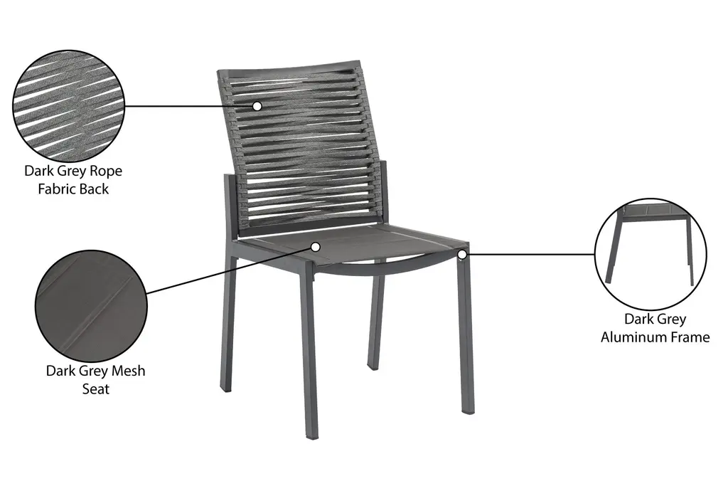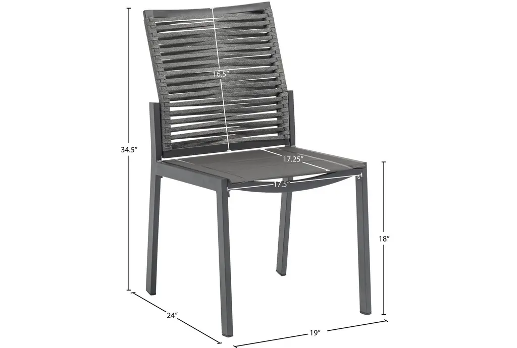 The Zephyr Grey Rope Fabric Outdoor Patio Dining Side Chair Set Of 2 is a perfect addition to any modern outdoor space. These chairs combine style and functionality, making them ideal for casual dining and entertaining. The contemporary design and durable materials ensure long-lasting comfort and elegance.