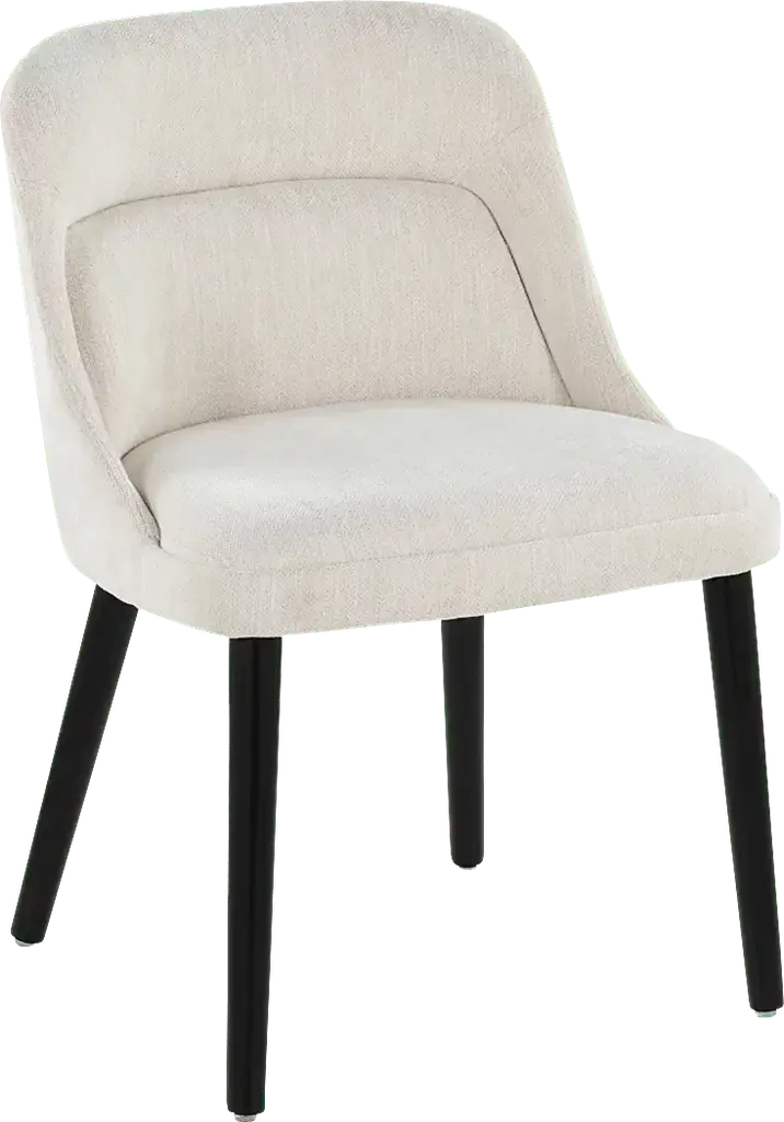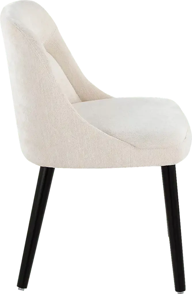 Elevate your space with the Zifra side chair, set of 2, a perfect blend of mid-century modern charm and contemporary durability. Featuring luxurious fabric upholstery and sturdy black wooden legs, this chair delivers both comfort and timeless style. Its sleek design and classic lines make it a versatile addition to any dining room. Customer assembly required.