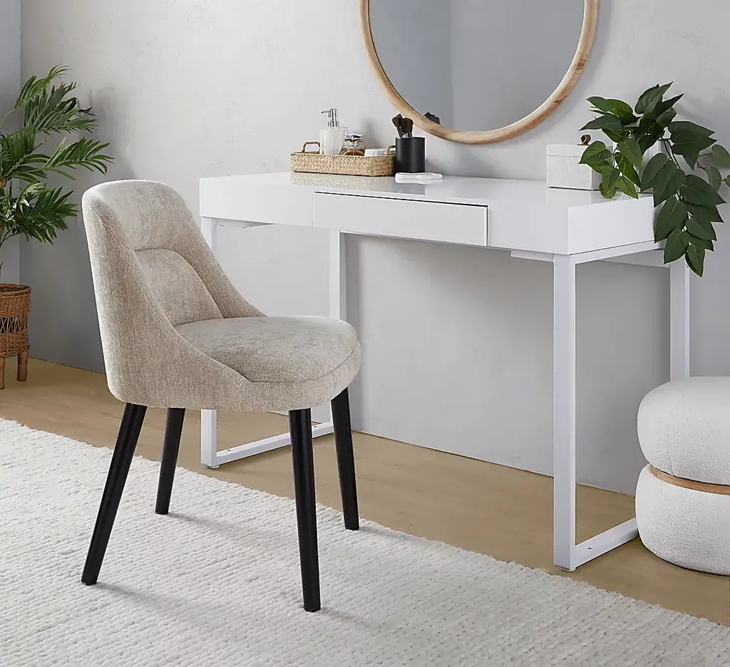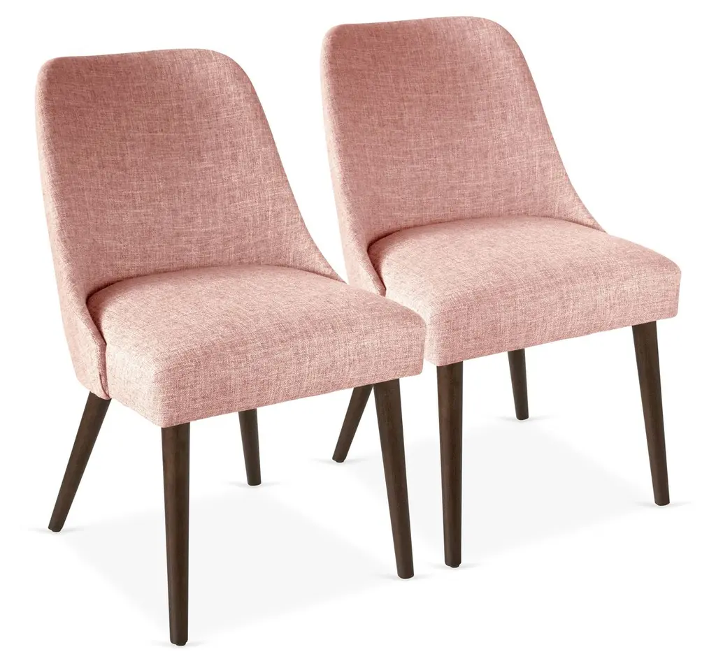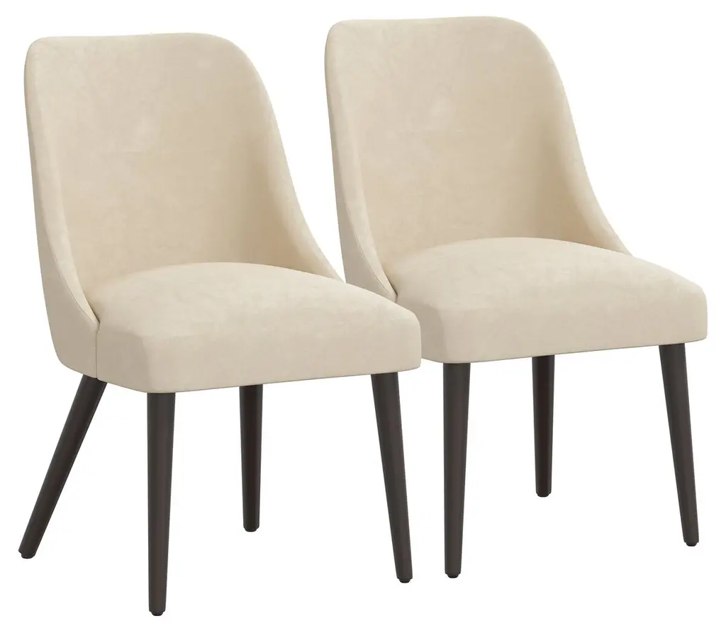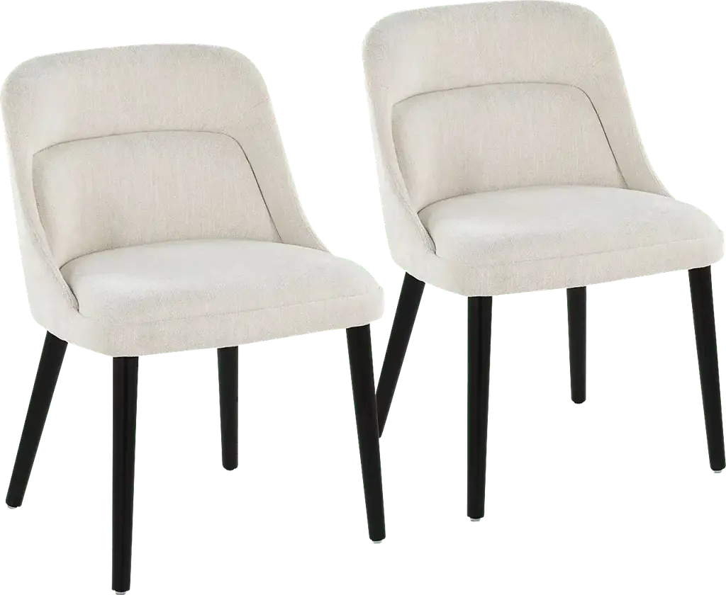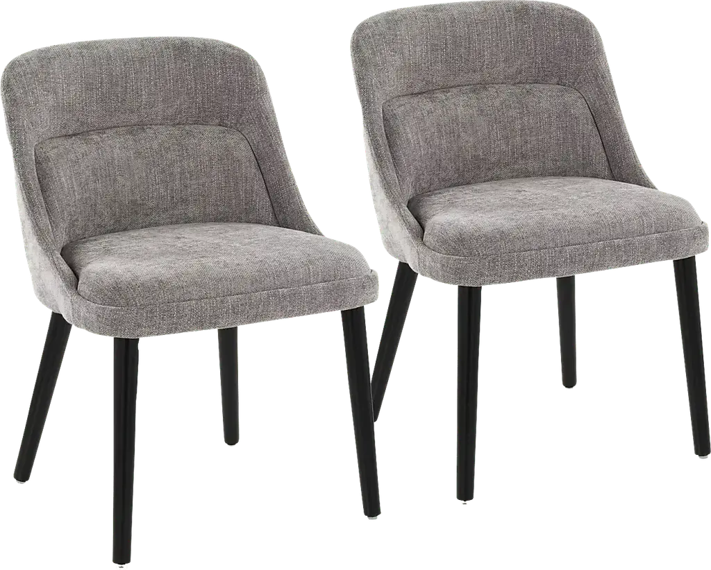Elevate your space with the Zifra side chair, set of 2, a perfect blend of mid-century modern charm and contemporary durability. Featuring luxurious fabric upholstery and sturdy black wooden legs, this chair delivers both comfort and timeless style. Its sleek design and classic lines make it a versatile addition to any dining room. Customer assembly required.