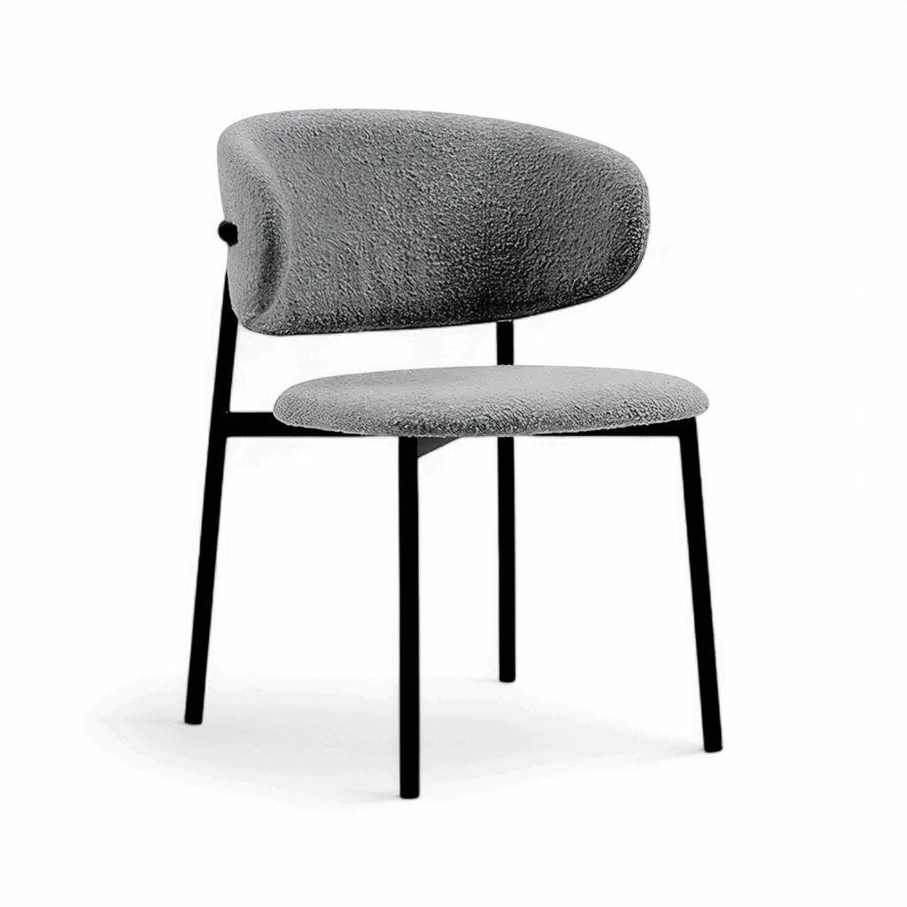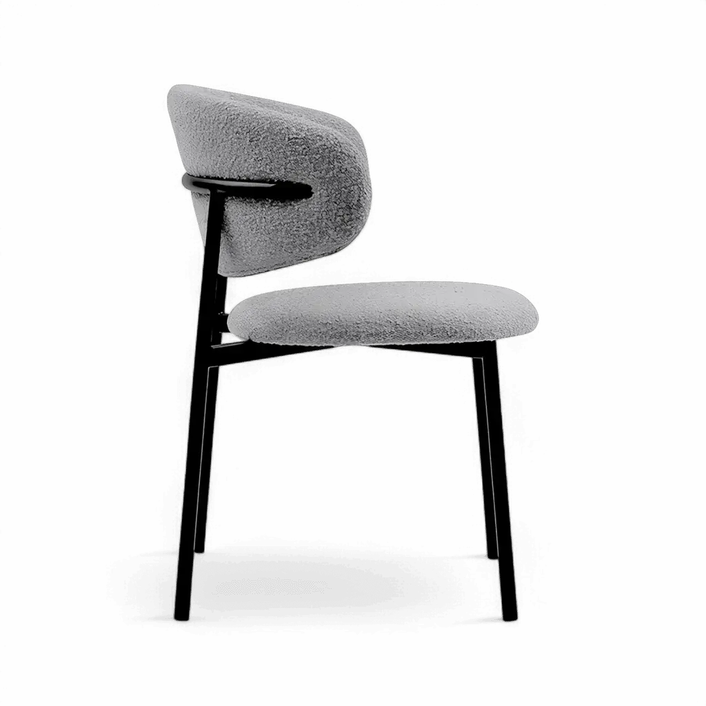 Add a pop of elegance to your dining room with our Zoya Dining Chairs in Gray Boucle. Featuring soft rounded edges and a simple silhouette, they’re subtle yet statement-making. Plus, the bouclé upholstery ups the luxe factor big time. Available Colors: White, Gray, Green, and TerracottaUpholstery: Boucle Fabric 85% Polyester 15% Acrylic | Padding: Foam | Legs: Matte Black Powder Coated Iron | Weight Capacity: 250 lbs