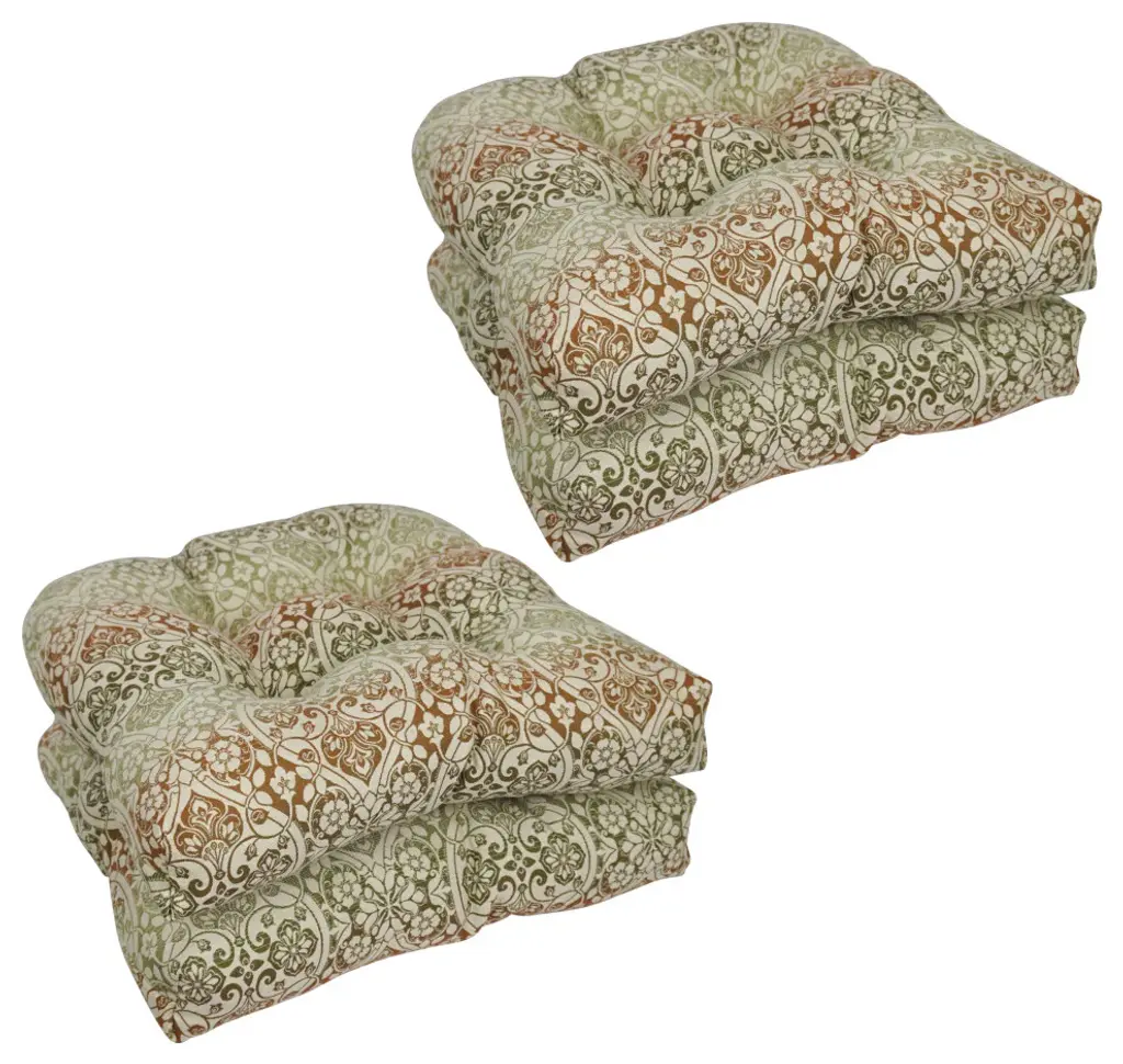 Add a splash of color and style to your home furnishings with these chair cushions. These cushions feature a classic tufted cushion design and are available in a wide variety of striking patterns of UV and weather-resistant spun polyester outdoor fabric.