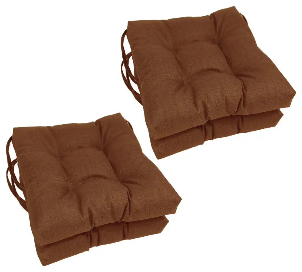 Add a splash of vibrant color and radiant style to your furnishings with this chair cushion. This cushion features a classic chair cushion style that will fit most chairs . Comes in a premium outdoor spun polyester fibric as a set of four cushions.