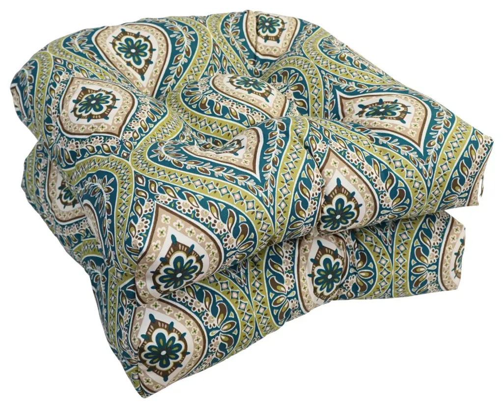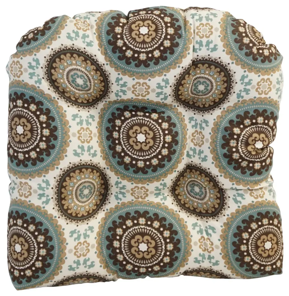 Add a splash of color and style to your home furnishings with these chair cushions. These cushions feature a classic tufted cushion design and are available in a wide variety of striking patterns of UV and weather-resistant spun polyester outdoor fabric.