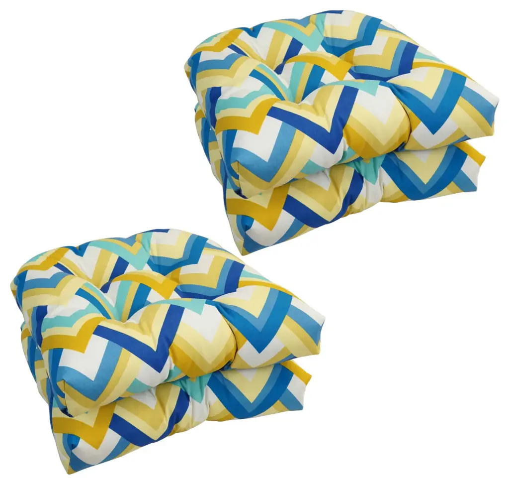 Add a splash of color and style to your home furnishings with these chair cushions. These cushions feature a classic tufted cushion design and are available in a wide variety of striking patterns of UV and weather-resistant spun polyester outdoor fabric.