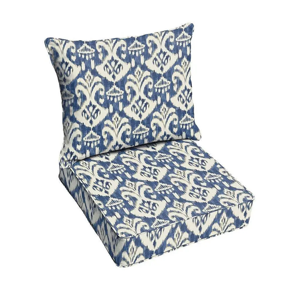 Add a splash of color and style to your home furnishings with these chair cushions. These cushions feature a classic tufted cushion design and are available in a wide variety of striking patterns of UV and weather-resistant spun polyester outdoor fabric.