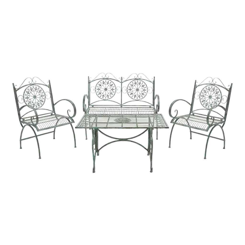 1950s Art Nouveau Vintage Wrought Iron Dining Chairs - Set Of 4